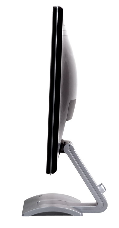 Nem csoda, hogy 62 mm-es vastagságával pillanatnyilag a Benq V2400W a legvékonyabb 24 colos kijelző. Az összhatása kimondottan jó, egyáltalán nem a szokott, unalmas külsejű készülék.