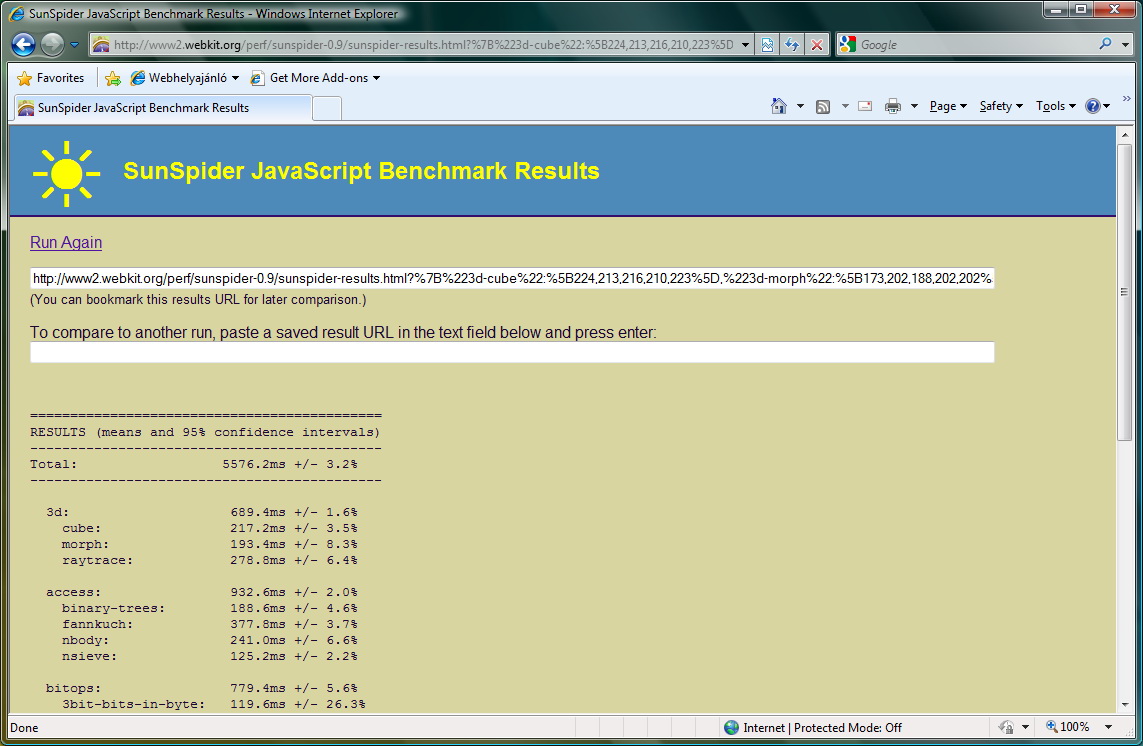 A konkurens FireFox 3.1-es bétája 93 pontot kapott, a Google Chrome 79-et, az Opera 10 és a Safari legújabb bétái pedig 100-at, tehát óriási a szakadék a Microsoft böngészője és a versenytársak között.