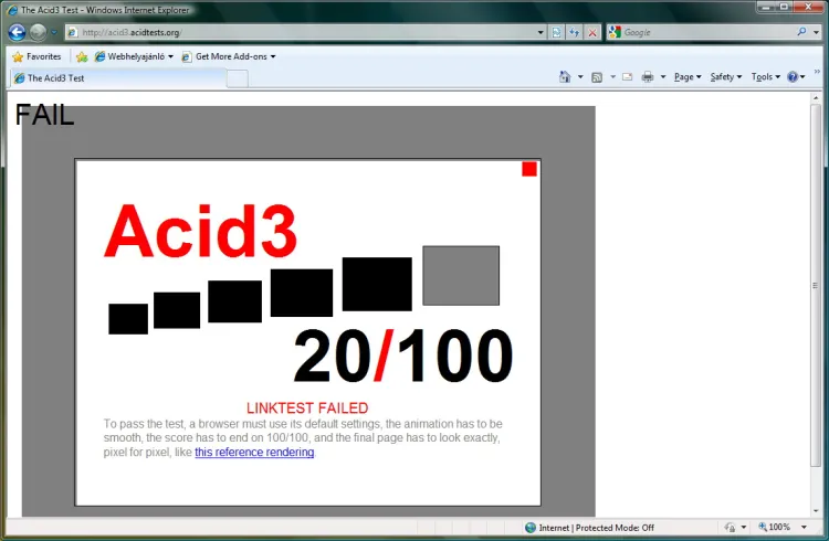Az Acid3 teszten azért az IE8 RC1 rendesen elhasal, 20, néha 21 pontot ér el a lehetséges 100-ból.