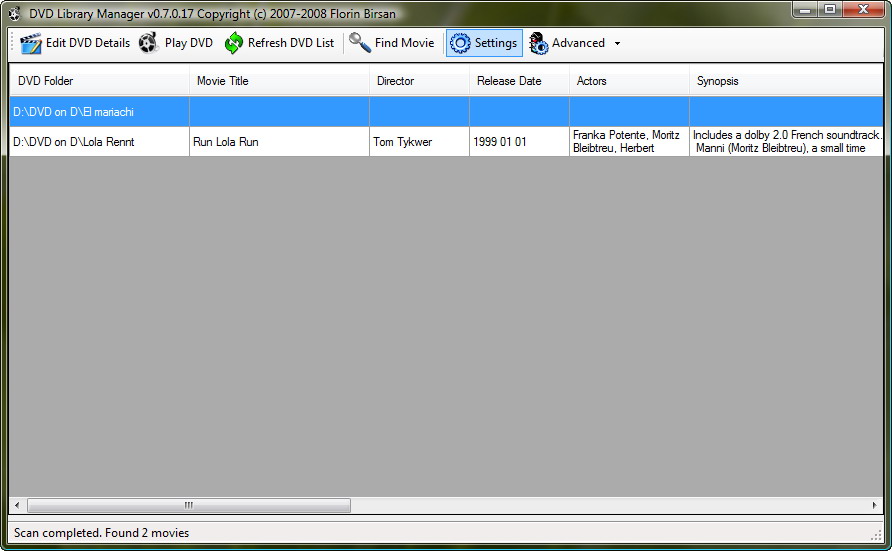 A legkönnyebb dolgunk a DVD borítókkal lesz, van ugyanis egy program, amely néhány gombnyomással elvégzi a feladat nagy részét helyettünk. A DVD Library Manager innen tölthető le. Indítsuk el a programot. A szoftver automatikusan megkeresi a Media Centerben beállított mappák alapján a DVD-ket, majd listába rendezi valamennyit.