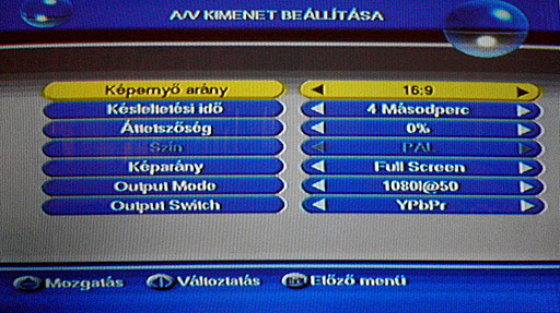 A beállítások között egyrészt a kimeneti jel beállításaira vonatkozó rész érdemel figyelmet, amely minden szükséges opciót tartalmaz ahhoz, hogy a 16:9-es és 4:3-as arányú tévék esetében is torzításmentes képet nézhessünk. A 4:3-as tévéknél a szélek levágását is kérhetjük, illetve lehetőség van alul-felül fekete csík kiegészítését is kérni. A HDMI kimenet legfeljebb 1080i felbontásra képes, emellett 720i/p és 576i/p felbontást kérhetünk. Természetesen a digitális kimeneten a HDCP másolásvédelem is támogatott. Ha lenne térhatású hang, azt a készülék sztereóvá alakítaná, vagy az optikai kimeneten keresztül eredeti formájában továbbítaná, külső erősítő felé. A HD2000 természetesen az AAC kódolású hangsávokat is tudja dekódolni.