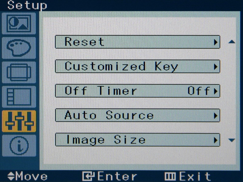 A menü tartalma is csak minimális mértékben változott, a 2263DX-hez képest új elemként megtaláljuk például az automatikus kikapcsolás lehetőségét (amit órában állíthatunk be), van AV mód és változtatható a digitális bemenetek jeltartománya is. Ez utóbbi a HDMI miatt került be, és HDMI Black Level névre hallgat. Haszna igazából csak akkor van, ha a monitort szórakoztatóelektronikai készülékkel kapcsoljuk össze, (ebben az esetben át kell váltani Normal opcióról Low-ra). Az AV mód a dinamikus kontraszt és az overscan bekapcsolására szolgál, ezt az opciót véleményünk szerint érdemes mindig kikapcsolva tartani.