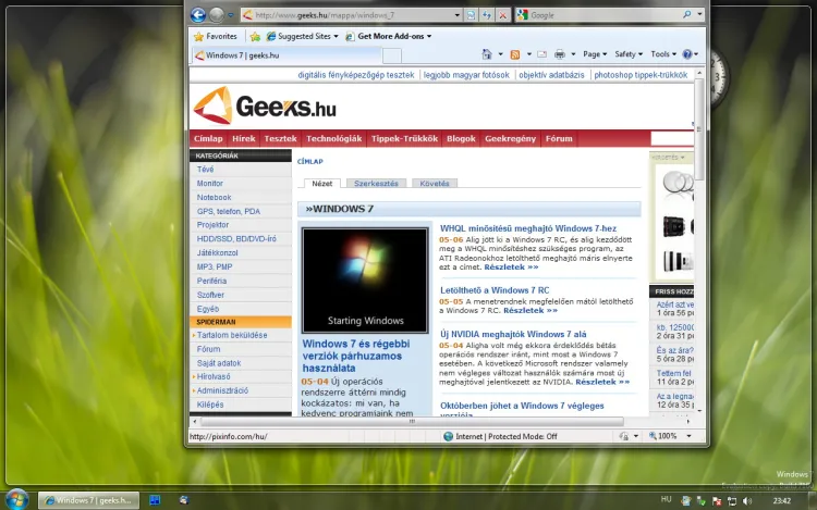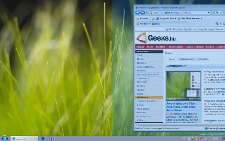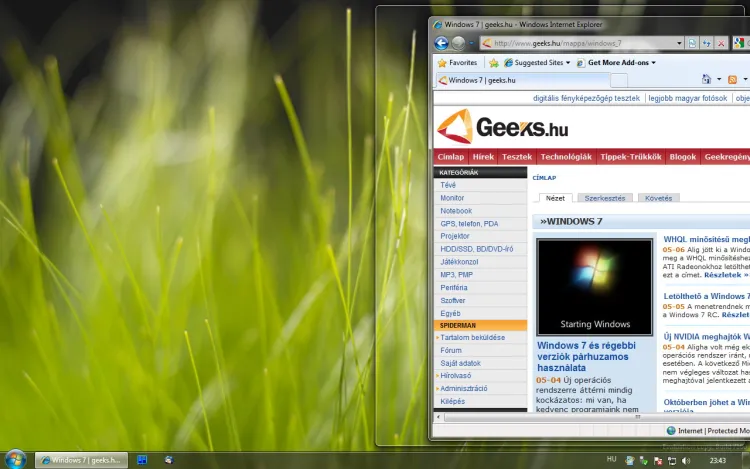 Aero a Windows 7-ben: Aero Peek, Aero Snap, Aero Shake