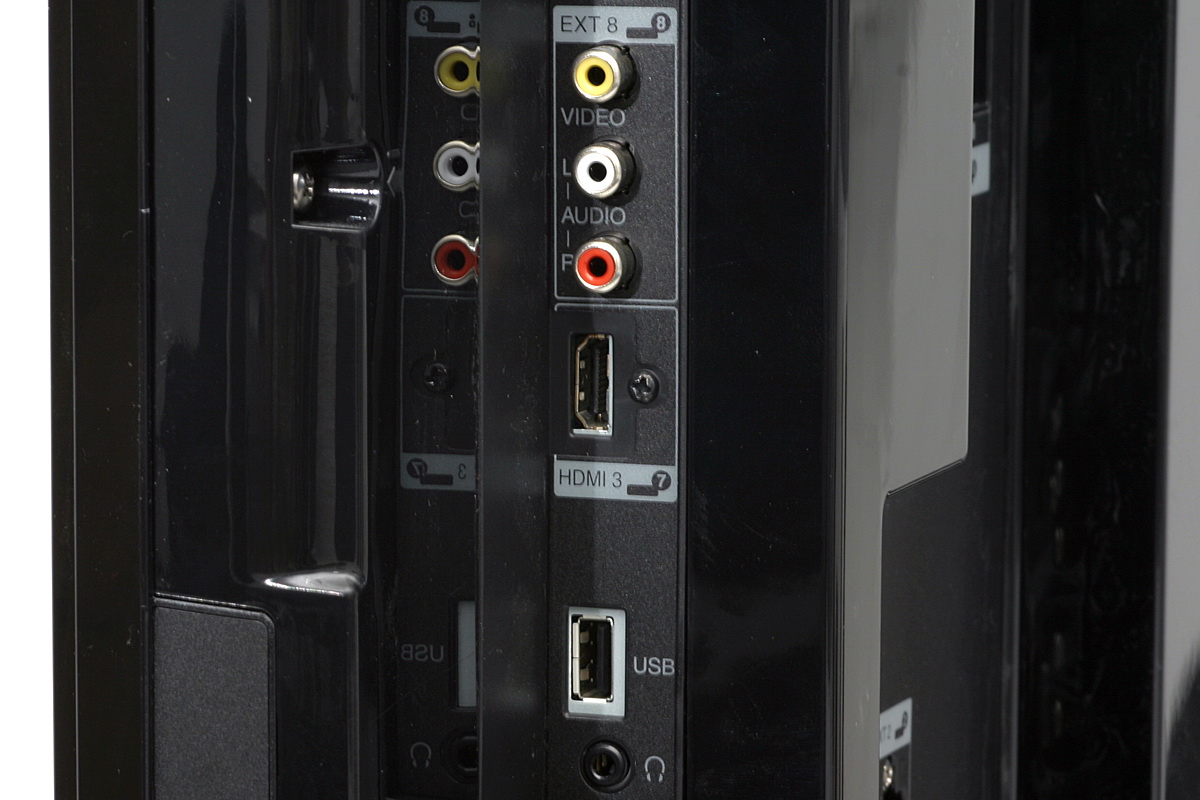 A hátsó csatlakozópanel és az oldalsó csatlakozópanel értelemszerűen nem túl sok újdonságot rejt, a Sharp esetében viszont az USB eleddig nem volt túl gyakori. A DH77E széria már ilyesfajta bemenetet is tartalmaz, ennek funkciójára később még visszatérünk. Ami talán a legfontosabb: HDMI-ből hármat kapunk, kettőt hátul és egyet (jobb) oldalt, audio fronton pedig optikai kimenetet és fülhallgató kimenetet is találunk. Az oldalsó panel a Sharpra jellemző módon ezúttal is eléggé süllyesztett, így falra szerelt tévénél nem lesz könnyű dolgunk a kábelek csatlakoztatásakor.