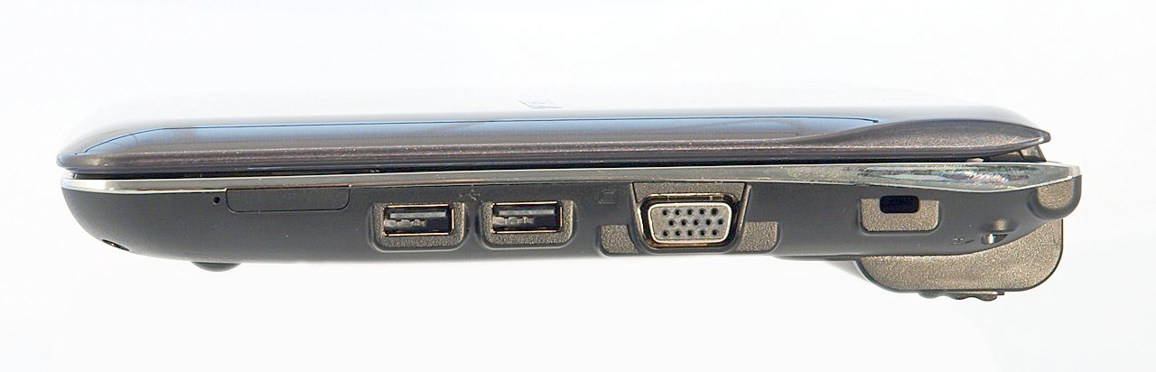 A Samsung netbookja, a csatlakozók szempontjából sem különleges: pontosan azt kapjuk tőle, amit bármelyik másik 10”-es készüléktől kapnánk.