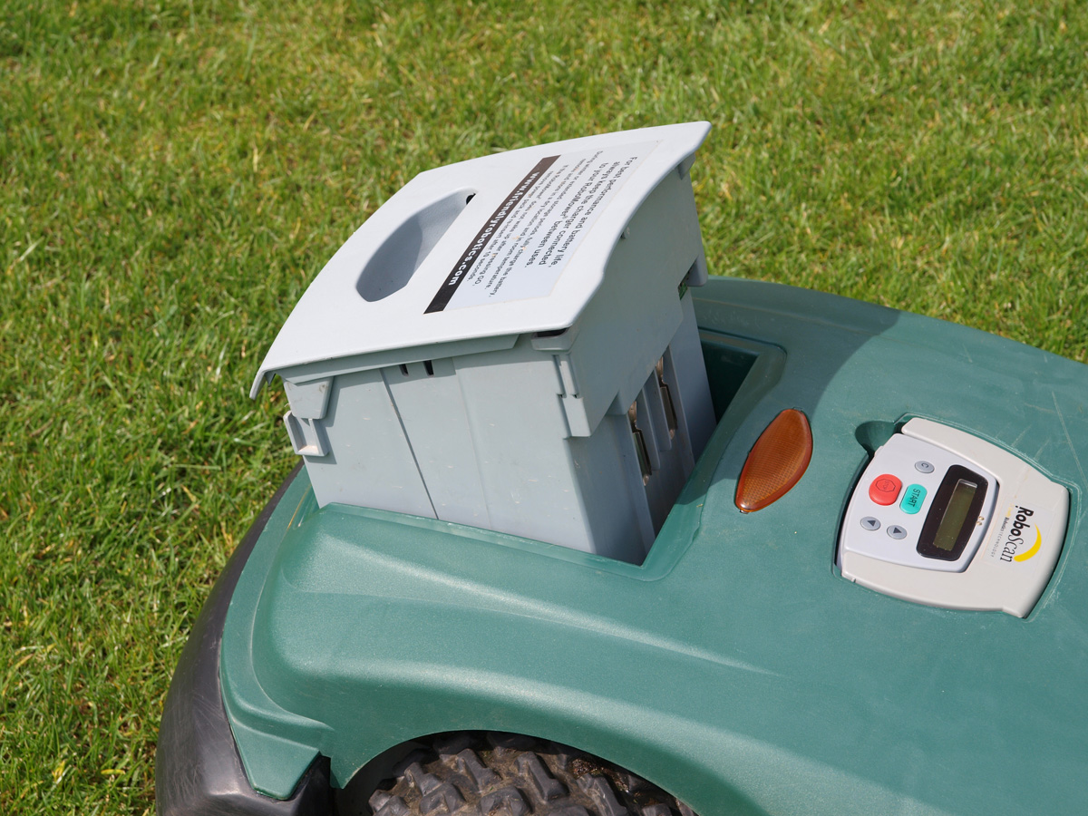 A Robomow RL1000 egyik meghatározó sajátossága, hogy könnyedén lehet benne akkumulátort cserélni. Az akkumulátor ház szabványos, gondozásmentes ólom akkut rejt, és egy tartalék darab beszerzésével duplájára is növelhető a lenyírandó terület mérete (persze ilyenkor szükség van az emberi beavatkozásra).