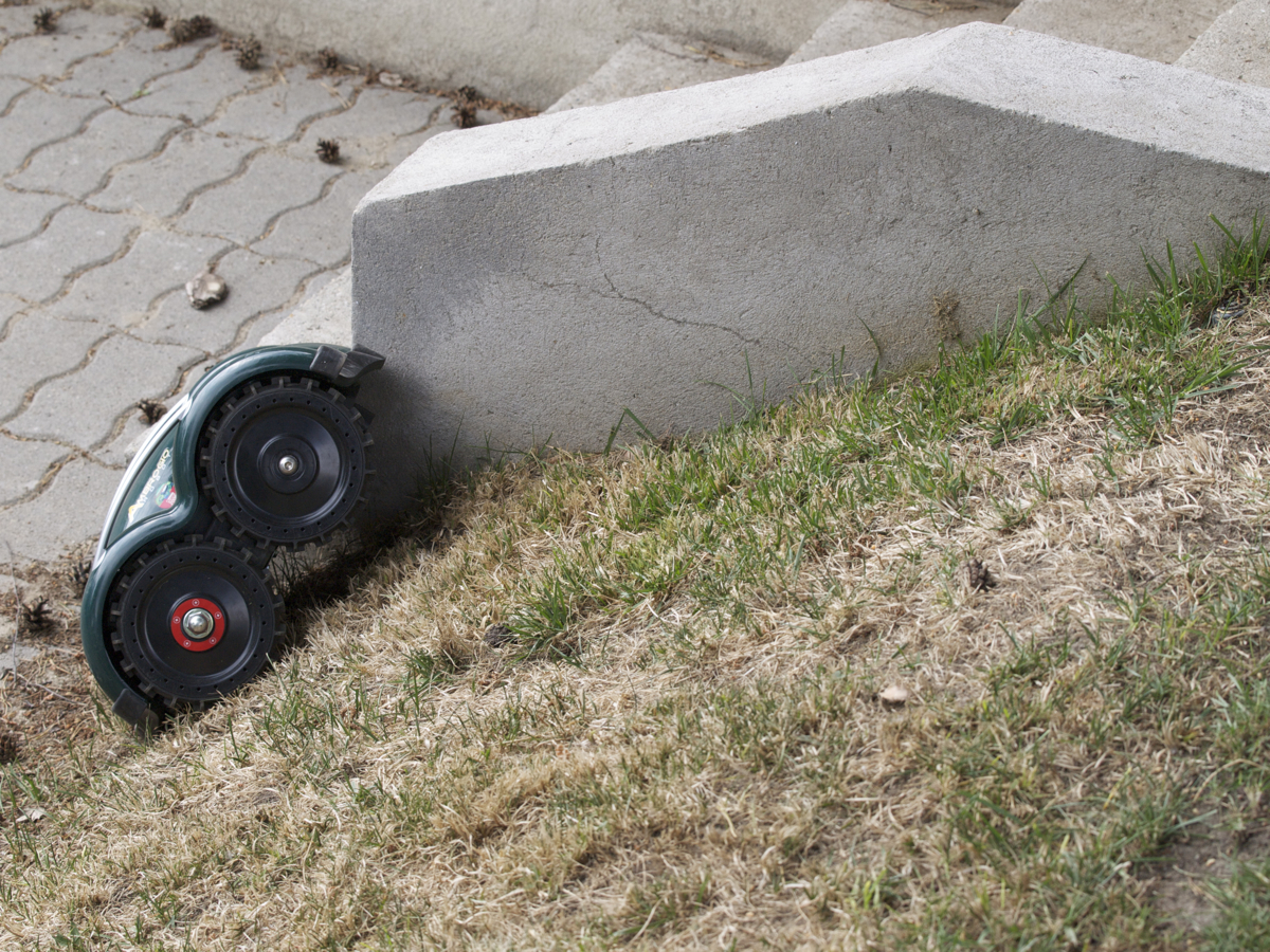 A robot maximum 27 fokos lejtőkön és emelkedőkön képes dolgozni, de ennek feltétele az íves átmenet. Abban az esetben, ha a vízszintes és a ferde rész között meredek az átmenet, akkor a maximális dőlésszög nem haladhatja meg a 15 fokot. A robot dőlésérzékelőkkel van ellátva, hogy felismerje azokat a szituációkat, amiket nem tud kezelni, de ahogy az első nap tapasztaltuk, ezek sokszor már csak későn jelzik a robotnak a bajt.