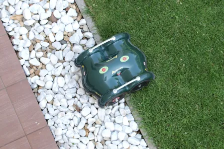 A többi szabály a pázsit és az azon lévő akadályok határolására vonatkozik. A legegyszerűbb helyzet, amikor a fű szintben találkozik egy járdával. A járda betonját vagy burkolatát a fűérzékelő hibátlanul felismeri, így a betonra kb. 20 cm mélyen megy csak be. Ez pont arra jó, hogy a széleken is gyönyörűen lenyírja a füvet.