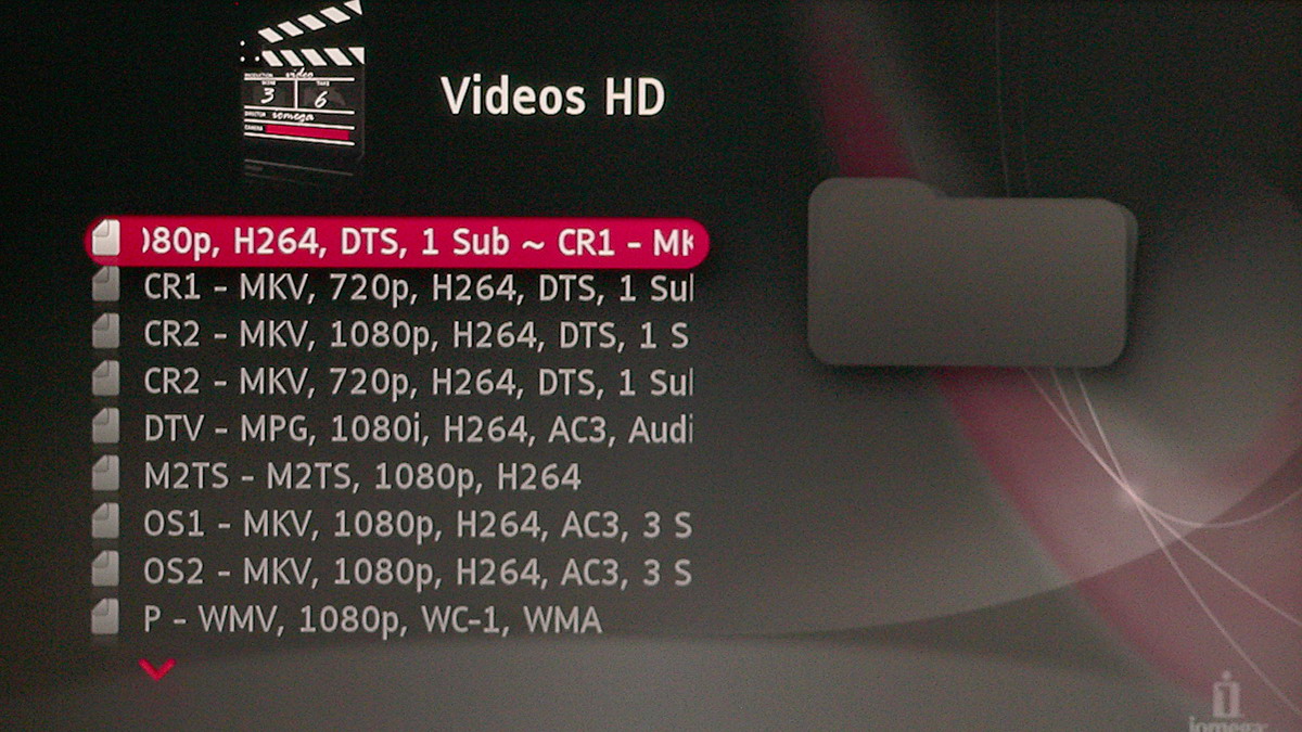 A tesztvideók közül az átlagosnál kevesebb fájlt sikerült megnyitnunk, az 5.1-es profillal tömörített H.264-es MKV-kat például meg sem próbálta lejátszani a hardver, rossz konténerformátumra hivatkozva. A 4.1-es profilú H.264-es videók, az AVCHD, WMV, WMV HD, VC-1, DivX és DivX HD videók hibátlanul mentek, viszont a másik mumussal, a GMC-t használó MPEG-4-es videókkal sem tudott mit kezdeni a legkisebb Iomega – ráadásul nemcsak a 3, hanem az 1 warp pontos GMC-s fájlokkal is meggyűlt a baja. A konténerek közül az MKV, az AVI, az MPG, az MTS/M2TS, a WMV, a MOV és a VOB egyaránt támogatottak, és a rippelt Blu-ray lemezek is lejátszhatók – de hasonlóan a rippelt DVD lemezekhez, menüt nem kapunk.