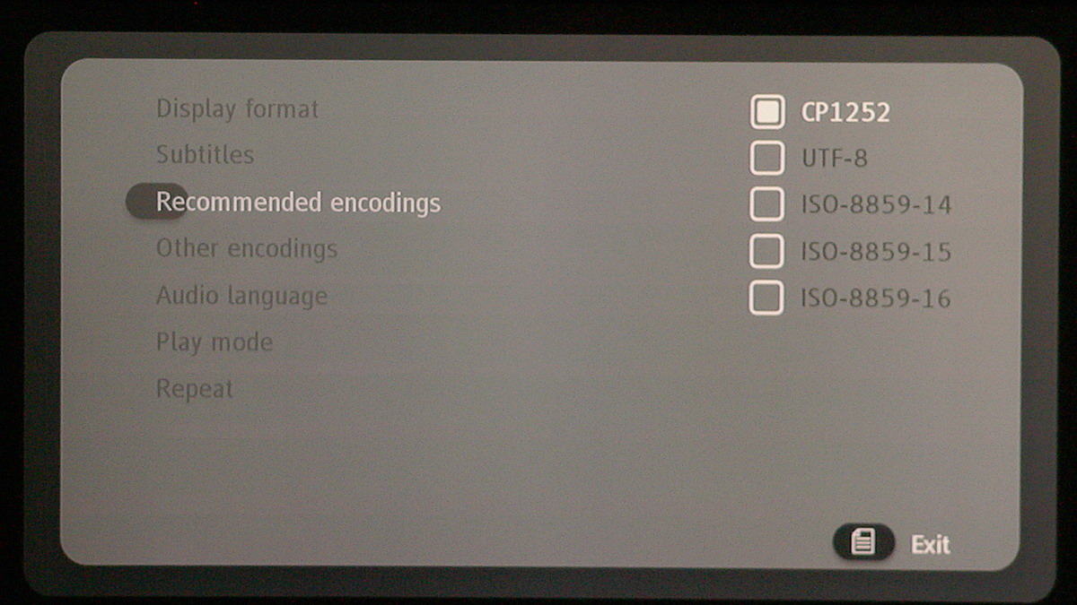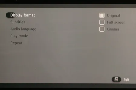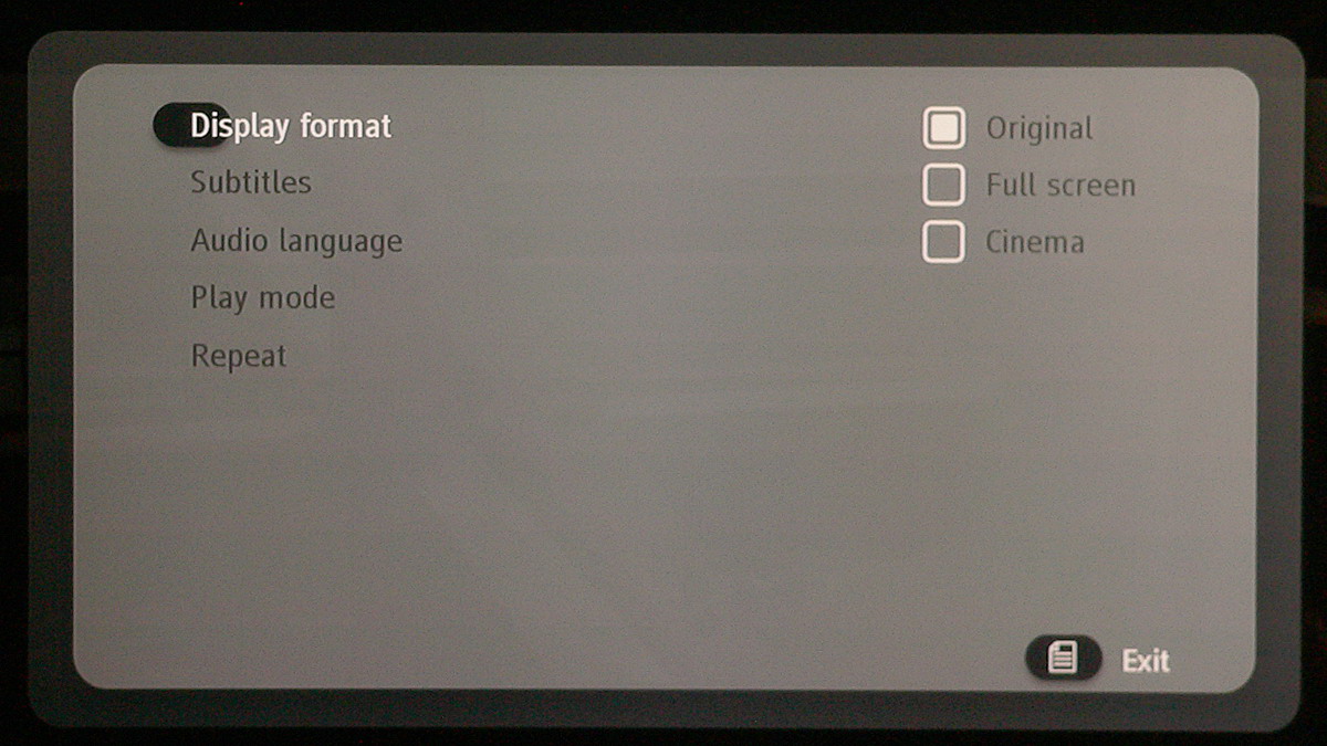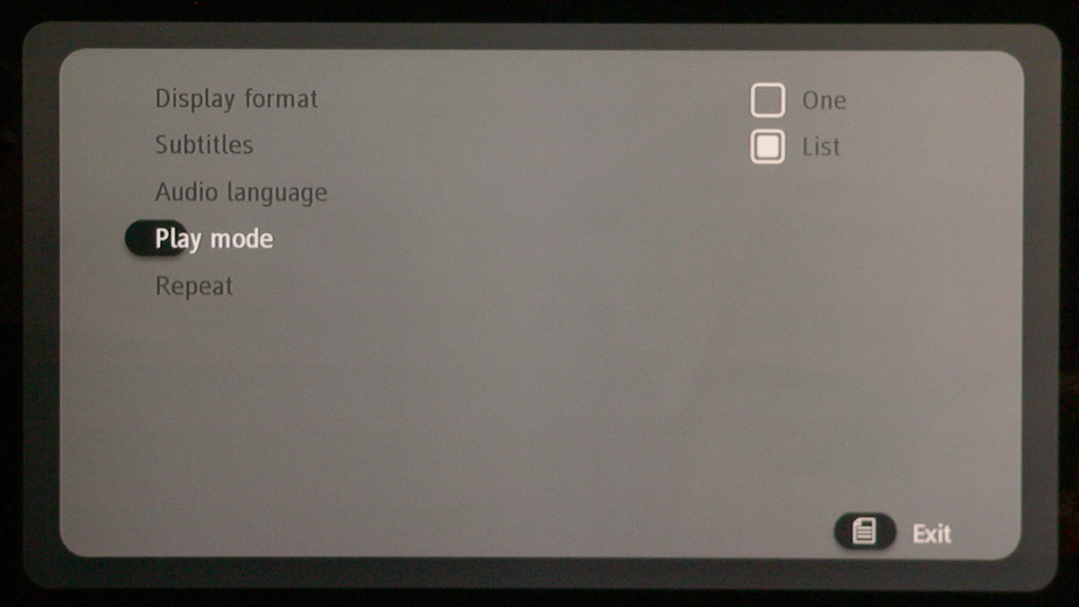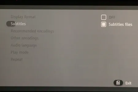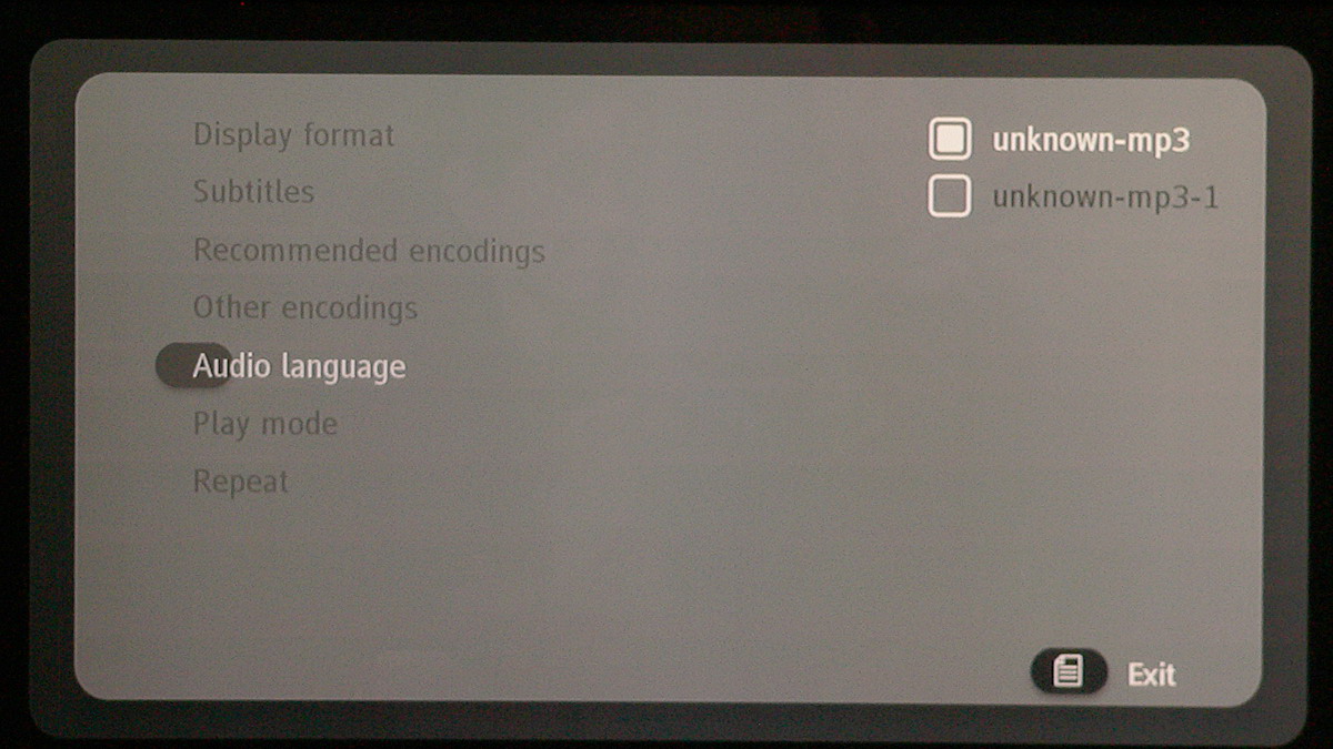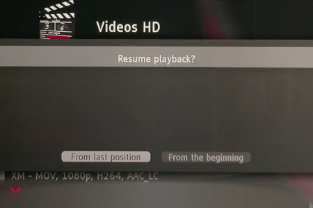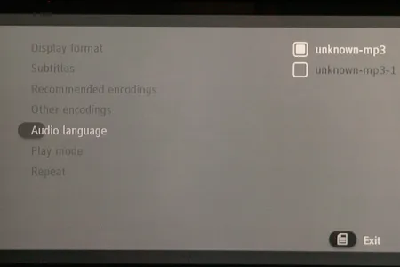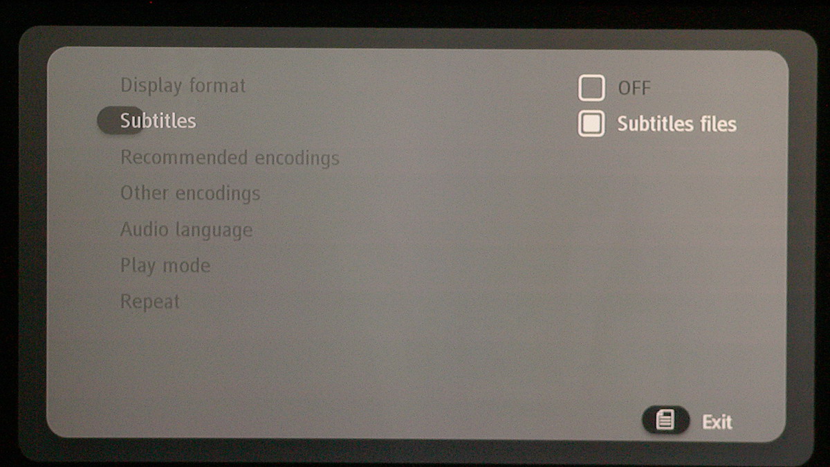 A lejátszó természetesen elboldogul több hang- és feliratsávval is, ezek között a Menü gomb megnyomása után előugró – szintén eléggé puritán – helyi menüben választhatunk. A félbehagyott fájlok esetén a következő lejátszásnál választhatjuk a videofájl folytatását is.
