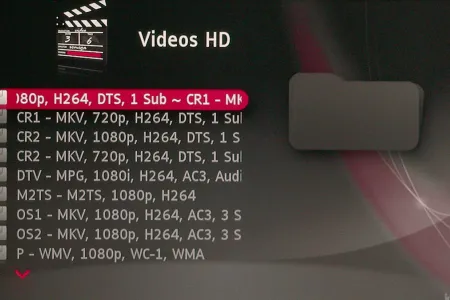 Pedig a ScreenPlay TV Link Director menürendszere nincs túlbonyolítva, alapvetően szürke háttéren egy szöveges felépítésű GUI-t kapunk. A főmenü is egyszerű, a három főkategória (zene, fotó, video) és az online tartalmak érhetők el segítségével, illetve a második oldalon találjuk meg a beállításokat. Opcióból sajnos nincsen túl sok, de ezek legalább egy jól átlátható, viszont mindenképpen szokatlan felépítésű felület segítségével állíthatók be. Talán a legfontosabb, hogy HDMI kábelt használva is legfeljebb 1080i@60Hz-es felbontást állíthatunk be. Ennek ellenére a ScreenPlay TV Link HD progresszív Full HD kép kiadására is képes, ha engedélyezzük az automatikus képfrissítés beállítása opciót: ebben az esetben a 24 Hz-es filmeknél a lejátszó automatikusan 24p módba kapcsol.