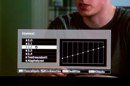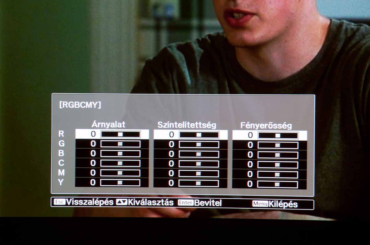 A képparaméterek széles körű állíthatóságában a TW5500 ennél is tovább megy: a gammát például nemcsak diszkrét értékekre állíthatjuk, hanem a görbét a kép egy kiválasztott részletére is optimalizálhatjuk. Ez egyrészt kiváló arra, hogy villámgyorsan elrontsuk az egyébként már alapbeállításokon is egész jó képminőséget (persze mindig ott az Alaphelyzet gomb a kiindulási értékekhez való visszatérésre), másrészt viszont lehetővé teszi azt, hogy aki szeret ezzel foglalkozni, az valóban a körülményekhez képest legjobb képet élvezhesse. Ebben segít az RGB illetve RGBCMY komponensek profi beállítási lehetősége is.
