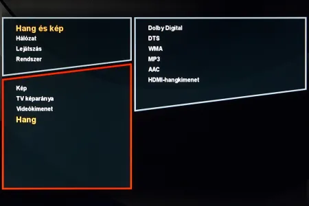 A beállításokon gyorsan végig lehet szaladni, részben az átlátható kezelőfelület miatt, részben pedig azért, mert túl sok beállítási lehetőség nincsen – viszont minden, ami fontos, az megtalálható. HDMI kimeneten keresztül automatikus, 480, 720 illetve 1080 soros progresszív illetve 1080 soros váltottsoros felbontást választhatunk például. A képfrissítési gyakoriság szintén lehet automatikus – ha a 24p-t is használni szeretnénk, akkor mindenképpen ezt az opciót kell kijelölnünk. Emellett PAL beállítással 50, NTSC beállítással 60 Hz-es fix képfrissítést és kérhetünk. A hangkezelés kitűnő, MP3, WMA, AAC, AC3 és DTS hangra külön megadhatjuk, hogy digitális vagy analóg formában szeretnénk a kimenetre küldeni.