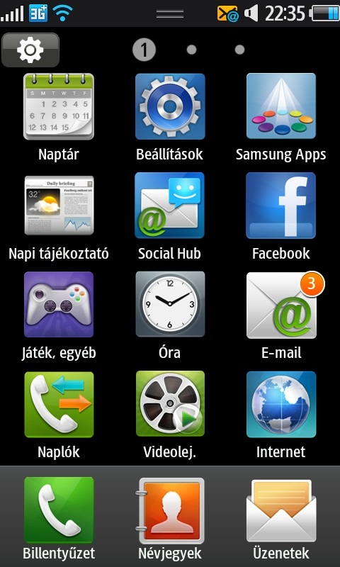 A főmenü, hasonlóan a kezdőképernyőhöz, több lapból állhat, a programok sorrendje pedig tetszés szerint állítható be – sőt, a Wave olyat is tud, hogy az utoljára használt szoftvereket automatikusan a lista elejére helyezi. Bár a Samsung Apps bolt választéka messze elmarad az Android Markettől (hogy az Apple App Store-ról ne is beszéljünk), már az előre telepített alkalmazások listája is igen szép, ráadásul ezek között több játékot is találunk, amelyek kihasználják a Hummingbird processzor képességeit.