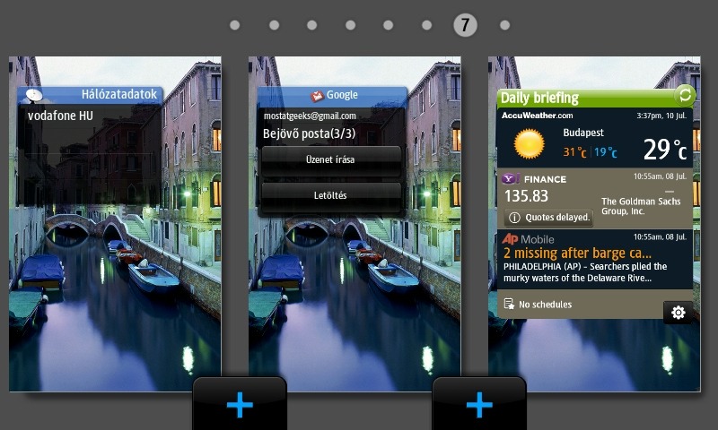 Az oldalak megtöltéséhez többféle widget áll rendelkezésre, de ezen a területen a Bada egyelőre kissé le van maradva: a Samsung alapból csak 15 darabot mellékel, amelyhez a Samsung Apps nevű boltból tölthetünk még le párat. Van például többféle óra, naptár és időjárás jelentés, illetve mindenféle közösségi hálózatokkal kapcsolatban lévő kiegészítő, amelyeken a Twitteren és Facebookon érkező frissítéseket nézhetjük át egy helyen. A widgetek legnagyobb gondja az, hogy nagy területet foglalnak el, kevés az olyan, ami nem igényelné legalább a képernyő felét, így pedig sokat kell majd lapozgatnunk. Szintén hiányzott az a lehetőség, hogy a főmenüből futtatható programokra mutató parancsikonokat helyezhessünk el a képernyőn.