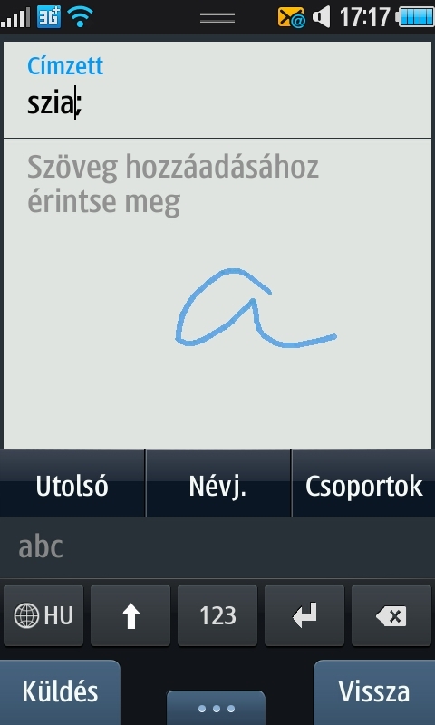 Szövegbevitelre többféle módszer áll rendelkezésre – a „hagyományos” telefonos billentyűzet (T9-cel) mellett választhatunk megszokott QWERTY (magyar nyelvnél QWERTZ) gombsort, sőt, teljes és külön képernyős kézírásfelismerést is. Sajnos ez utóbbiak a magyar ékezetes karaktereket nem ismerik, de ettől eltekintve egész jól működnek (sebességben viszont még mindig a QWERTY a leggyorsabb).