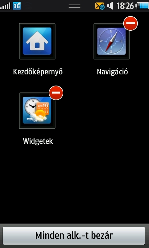 A középső gomb nyomva tartásával érhetjük el a feladatkezelőt, ami hasznos kiegészítő, de van egy bosszantó képessége: a minden futó alkalmazás bezárása opcióra kattintva nemcsak a programokat csukja be, hanem a nyitóképernyőn elhelyezett widgeteket is eltünteti. További probléma, hogy ha készülékünket egyszerű háttértárként csatlakoztatjuk a számítógéphez, akkor ugyanez történik – aki sok időt töltött a főképernyők beállításával, az igencsak bosszús lesz.