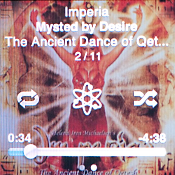 A lejátszás közben a képernyőn az adott dalhoz tartozó borítóképet látjuk, ezt megérintve kerül elénk a „kezelőfelület”, amelyen a gombok két képernyőre lettek szétosztva: az első oldalon a Play/Pause és az előre-hátra léptetés-tekerés van, a másodikon pedig az ismétlést, a véletlenszerű lejátszást és a Genius mixet kapcsolhatjuk be. A jobb alsó sarokban látható kis „i” betűvel az adott szám értékelését lehetővé tevő skálát és az album többi számát vagy a lejátszási lista további elemeit érhetjük el. Jópofa ötlet, hogy a számok sorrendjének megváltoztatásához csak meg kell ráznunk a lejátszót.