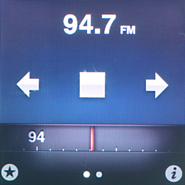 A harmadik alapszolgáltatás az FM rádió, ami egyébként az Apple-től nagy ajándék, tudniillik kevés MP3-lejátszójukban találkozhattunk eddig vele. Antennaként természetesen a fülhallgató vezetékét használja a rádió az Apple-nél is. A megtalált adókat elmenthetjük a kedvencek közé, ami viszont igazi érdekesség, az az, hogy a rádió rendelkezik Time Shift funkcióval, azaz például telefonhívás esetén „megállíthatjuk” a rádióadást – legfeljebb 15 percnyi műsor erejéig. Az iTunes Tag funkciót támogató rádióadóknál lehetőségünk van a nekünk tetsző zeneszámokat bejelölni, hogy aztán az iTuneson keresztül megvásárolhassuk őket. Ez persze Magyarországon legfeljebb érdekességszámba megy, hiszen a hazai adók ezt a funkciót nem támogatják.