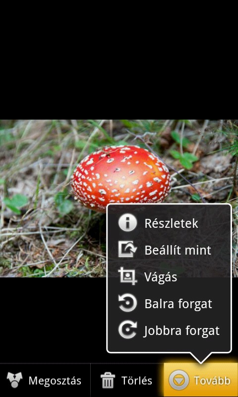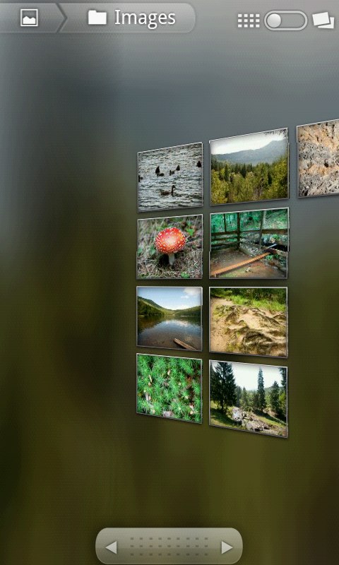 A Galéria apró előnézeti képek formájában és könyvtárak szerint csoportosítva mutatja a képeket – és ha szeretnénk, akkor diavetítést is indíthatunk, többféle átmeneti effektust használva. A képeket természetesen megoszthatjuk Facebookon, Picasán, elküldhetjük őket Bluetoothon, levélben és MMS-ben is.