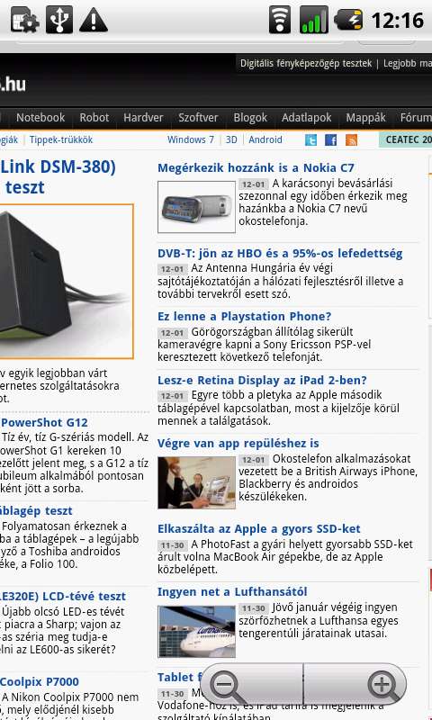 Szerencsére sokkal jobban áll a készülék az internetböngésző területén, mivel a mellékelt böngésző gyors, több lapot is kezel egyszerre, hibája viszont, hogy nem tördeli újra az oldalakat, így sokat kell mozognunk ujjunkkal, ha mindent el szeretnénk olvasni. Csiptetős zoom és Flash viszont van, a YouTube-hoz pedig saját klienst is kapunk.