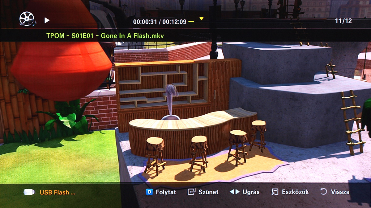 Korábbi cikkeinkben már többször is leírtuk, hogy jelenleg a Samsung az egyetlen olyan tévégyártó, aki olyan médialejátszót pakol a tévébe, ami nem ijed meg a DTS hangsávoktól sem. Ez pedig nagyon megnöveli annak az esélyét, hogy egy letöltött filmet el tudjunk indítani. (Az igaz, hogy a sorozatok nagyfelbontású verziói csak AC3 hangot kapnak, viszont a filmek nagyobbik része DTS hangsávot tartalmaz.) Ezzel együtt sajnos még mindig nem tökéletes a dolog, mert az L5 beállítással tömörített H.264 videókat a tévé nem tudja kezelni, illetve nagy bitráta mellett akadozást is tapasztaltunk. A szokásos megszorítások is megmaradtak, így a C490-es sem kezeli a VC-1-es WMV-ket, az AVCHD kódolású ts fájlokat, a GMC-vel tömörített DivX és XviD videókat, az M2TS konténereket és a FLAC-ot sem, a rippelt DVD-ket pedig csak menü nélkül, a fájlok kézi kiválasztásával nézhetjük meg.