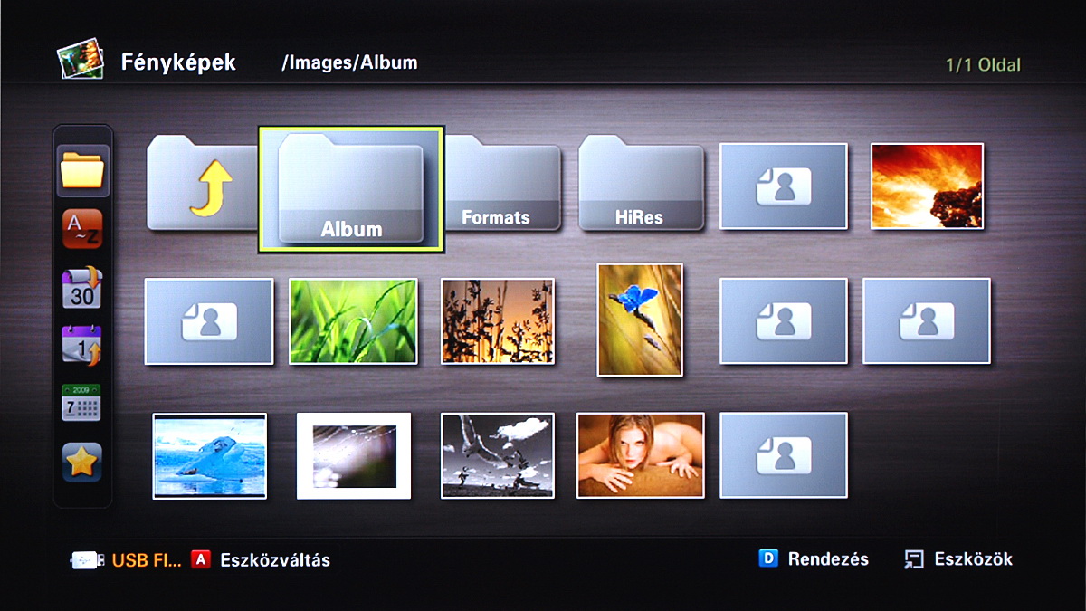 Vagy inkább egyes számban: extra. A 3D mellett ugyanis a tévé egyetlen extrája a médialejátszó, ami viszont legalább – többé-kevésbé – teljes értékűnek nevezhető. A fájlok lejátszására csak USB-s adattárolóról van lehetőség, a tévé hálózati interfészt nem tartalmaz.