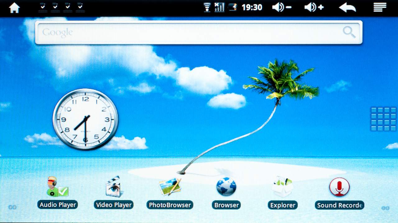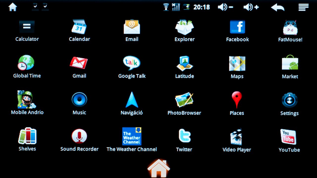 Ami a továbbiakat illeti, a tesztelt gépben 256 MB RAM és 4 GB flashmemória volt, de ezen felül van még körülbelül 400 MB-nyi tárhely a programok telepítésére is. A 4 GB flashből nekünk csak 2,25 GB lesz elérhető, ráadásul az Android 2.1-nek köszönhetően sem ez, sem a microSD kártya által nyújtott külső tároló nem használható szoftverek telepítésére. A 7”-os, 800×480 pixeles felbontású rezisztív képernyőről már szóltunk, ennek képminősége szerintünk csak az átlagos szintet éri el.