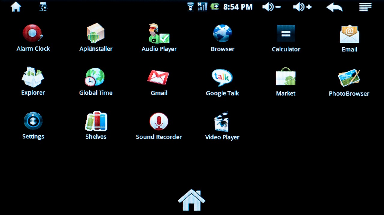 Érdekes információ az e-Paddal kapcsolatban, hogy a gyári visszaállítással itt annyira „csupasz” operációs rendszert kapunk vissza, hogy még a Maps és a naptár is hiányozni fognak. Ezek helyreállításához a forgalmazó oldaláról kell letöltenünk és telepítenünk egy csomagot. A telepítéshez az ApkInstaller nevű alkalmazást használhatjuk, ami egyébként bármilyen androidos program installálására képes. Tesztünk alatt a standard programcsomag telepítése után rendelkezésre álló funkciókat próbáltuk ki – mivel azonban az e-Pad hozzáfér az Android Markethez is, tudása könnyedén bővíthető.
