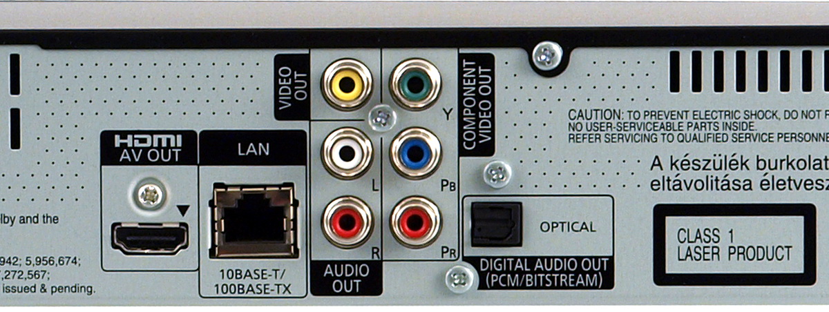 A hátlapra elég kevés csatlakozó került, ez az egyik legfontosabb különbség a DMP-BDT300-hoz képest. Persze általában nem baj, ha nincsen rengeteg csatlakozó, elég, ha a fontosabbak megvannak. Nos, a Panasonic DMP-DBT100 esetén ez a tétel nem feltétlenül teljesül, HDMI kimenetből ugyanis csak egyet kapunk, azaz a tévéhez és az AV erősítőhöz nem használhatunk külön kábelt. Mivel a Dolby TrueHD és DTS HD hangsávokat csak HDMI-n keresztül tudja az lejátszó továbbítani, megszorítás, hogy a hangot csak akkor élvezhetjük tökéletes minőségben, ha az erősítőnk HDMI 1.4-es. „Normál” digitális hangkimenetből is kevesebb van, a Panasonic csak az optikai csatlakozót hagyta meg, az S/PDIF lemaradt a DMP-BDT100-ról. A további kimenetek között kompozit és YPbPr videokimenetet és sztereo hangcsatlakozót találunk – az ár ismeretében azt természetesen nem is vártuk volna el, hogy a Panasonic meghagyja a 7.1 csatornás analóg hangkimenetet is. A DMP-BDT300-hoz képes hiányzik még a hátsó USB port is, ami főleg azoknak okozhat gondot, akik az Ethernet csatlakozó helyett a WiFi-t szeretnénk használni: egy külön stick megvásárlását követően erre elvileg van mód, az előlapi USB-re csatlakoztatott adapter viszont nem nyújt éppen szép látványt.