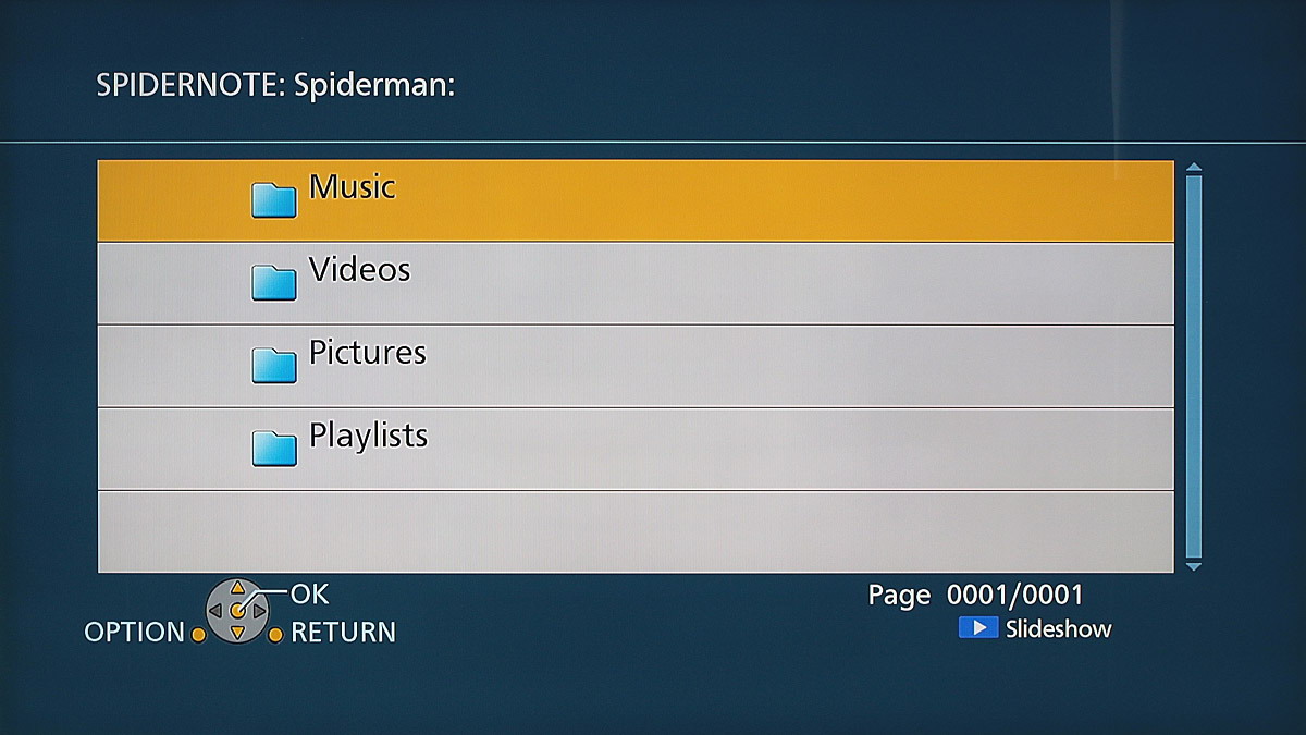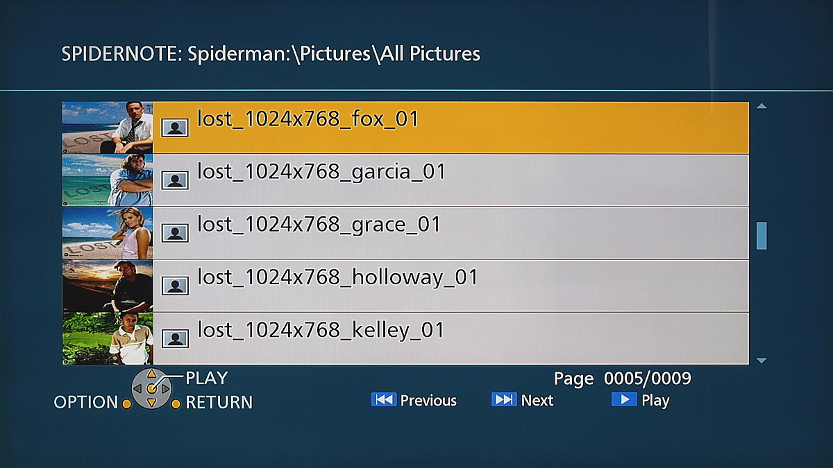 Az előző oldalon érintőlegesen már említettük, hogy a médialejátszó a konkurensek megoldásához képest kevesebb formátummal boldogul, ami a gyakorlatban az jelenti, hogy a konténerek közül az AVI, VOB, MTS, M2TS, MPG és MKV támogatott, a videokodekek közül az MPEG-1/2/4, AVCHD és AVC/H.264, a hangformátumok közül az MP3, a képek közül pedig a JPG, BMP és GIF. Ennél is nagyobb gond azonban, hogy a médialejátszó az USB-s adattárolókat csak akkor kezeli, ha azok FAT32 fájlrendszert használnak, így a nagyméretű MKV-kat legfeljebb Blu-ray vagy DVD korongra kiírva nézhetnénk meg. A médialejátszó felülete egyébként nem is túl optimális videózáshoz, mert egyetlen képernyőn csak nagyon kevés, mindösszesen öt fájl látható egyszerre, így egy nagyobb filmgyűjteményben már navigálni is rettentő kényelmetlen. A médialejátszó inkább arra alkalmas, hogy a fényképezőgéppel és a videokamerával készített felvételeket megnézzük a tévén, nem pedig arra, hogy a netről letöltött filmeket nézzük meg vele.
