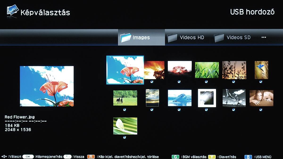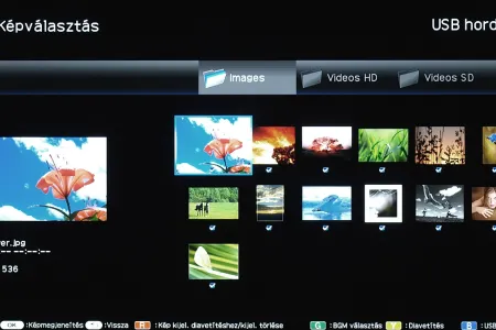 A képnézegető rész viszont jól sikerült (a mappakezeléssel és azzal együtt is, hogy az LC-46LE925 csak a JPG-ket olvassa be), a tévé ugyanis gyorsan készíti el az előnézeti képeket és gyorsan olvassa be a nagyfelbontású illetve nagyméretű állományokat is. A diavetítés mellé választhatunk háttérzenét, vetítés közben pedig még arra is van mód, hogy a képeket elforgassuk. A képnézegető egyetlen hiányossága az, hogy az 1920×1080 pixelnél kisebb felbontású képeket nem nagyítja ki teljes képernyősre. A nagyobbakat viszont természetesen lekicsinyíti Full HD méretűre a tévé.