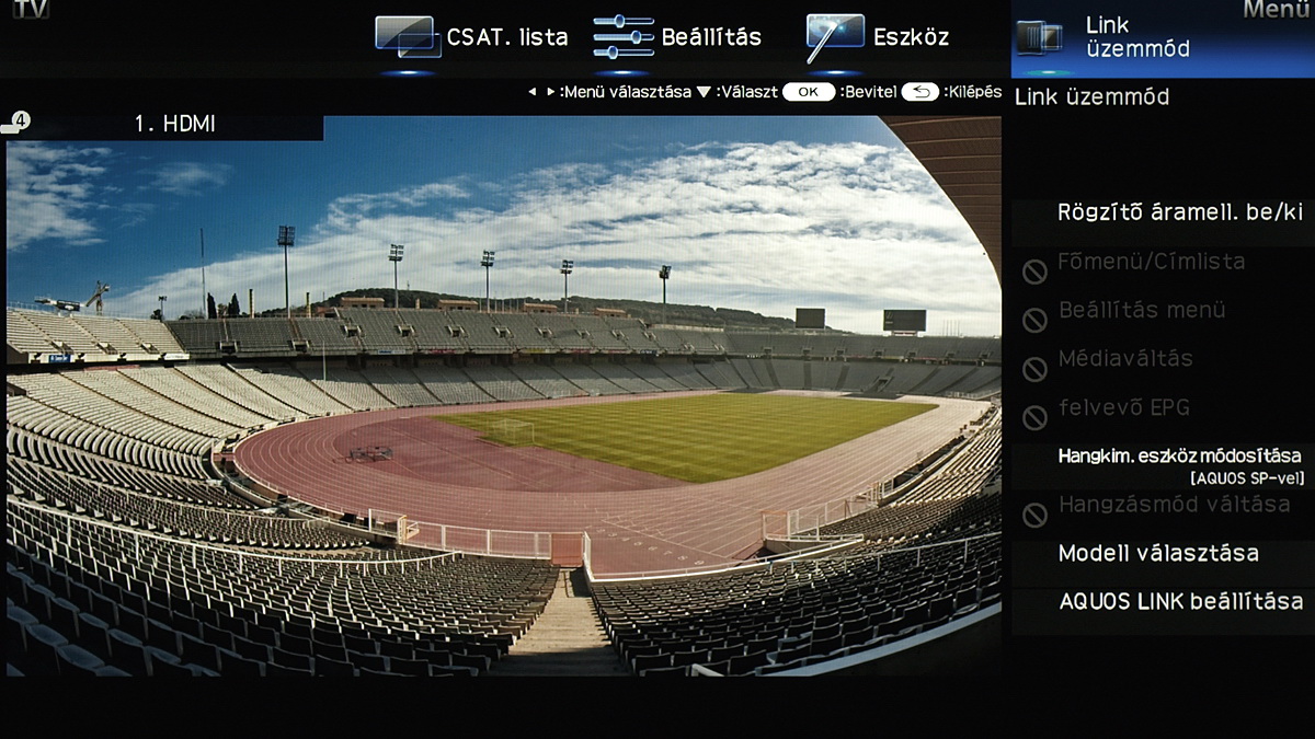 A funkcionalitás az LE820-as szériához képes alapvetően nem változott, de természetesen néhány új, a 3D-hez kapcsolódó opció került a tévébe. Ezeket az előző oldalon már bemutattuk, itt most nem térünk ki rájuk. A Sharp felső- és csúcskategóriás tévéinek a testreszabhatóságával korábban sem volt gond, így az LC-46LE925E sem okoz csalódást, a képjellemzők közül még a fehéregyensúly és a gamma is állítható, a fényerőt a környezeti fényhez igazító algoritmus szintén paraméterezhető, a scanning backlight és a 100 Hz-es képfrissítés pedig egymástól függetlenül is kapcsolgatható. Nem változott viszont sajnos a menü sebessége, a vezérlőszoftver rettenetesen lassú, a távirányító gombjaira a kód lomhán reagál. Meg lehet szokni, de egy csúcskategóriás tévénél bosszantó ilyen hibába belefutni.