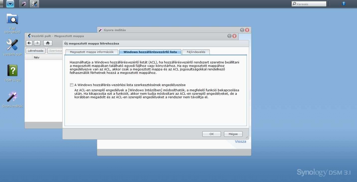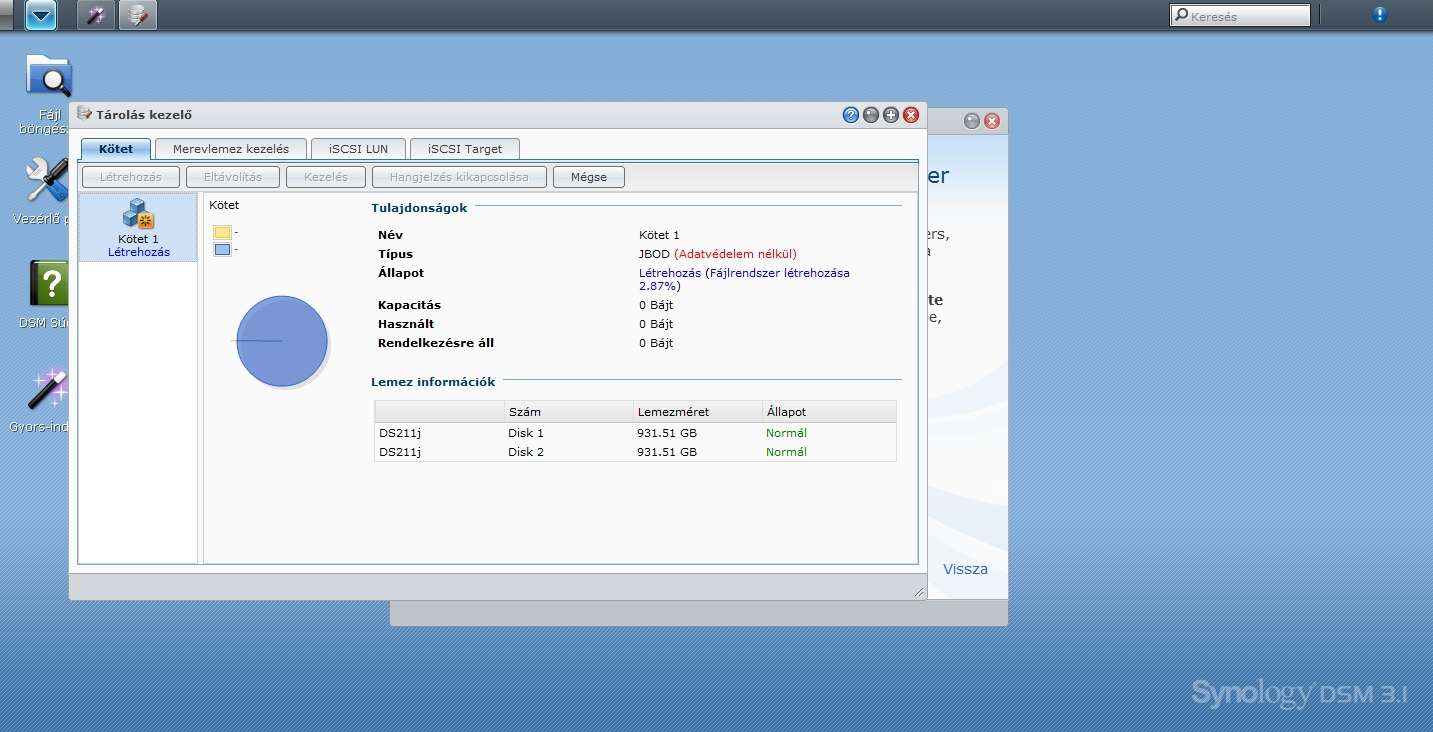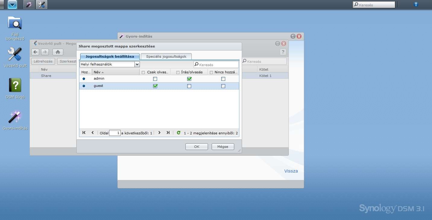 Ha készen vagyunk, a böngészőn keresztül már el is érhetjük a DS211j kezelőfelületét, amely rengeteget változott az elődhöz képest, a DSM 3.1 operációs rendszernek köszönhetően. A legfeltűnőbb különbség az ablakos megjelenítés, ami lehetővé teszi, hogy egyszerre több beállítást és szolgáltatást is elérjünk.