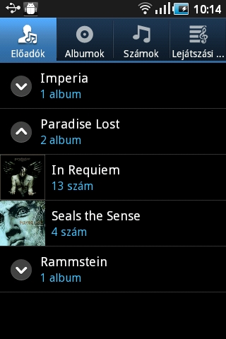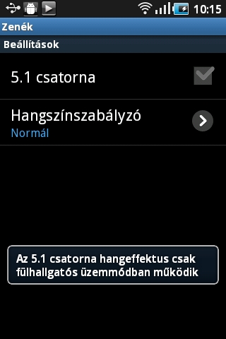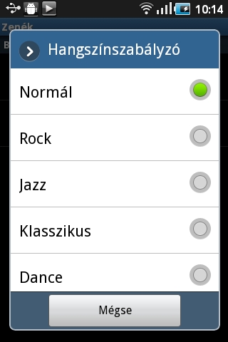 A zenelejátszó a szokásos funkciókat nyújtja, tehát különféle paraméterek alapján kereshetünk a fájlok között és rendelkezésre áll EQ is. A számok lejátszása közben az ID3 mezőkben található információk és az albumképek természetesen megjelennek, tudunk lejátszási listát is készíteni, amelynek sorrendjét később még módosíthatjuk is. Amennyiben a lejátszási ablakban rákattintunk az adott dal címére, előadójára vagy albumára, egy menüt kapunk, amin keresztül releváns információkra kereshetünk a neten, a YouTube-on, vagy a készüléken található többi dal között.