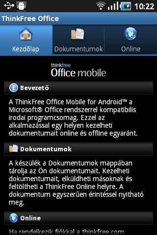 A közönséges irodai alkalmazások feladatát a ThinkFree Office nevű programcsomag látja el – ez a Microsoft Office által készített dokumentumokkal való munkára való. Nemcsak nézegetni tudunk vele, hanem szerkeszteni is, illetve tartozik hozzá 1 GB-nyi online tárhely.