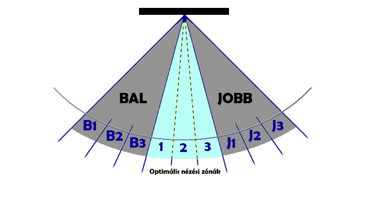 Egy multiview kijelző esetében a gyártók több zónapárt alakítanak ki, és ezeket teszik szépen sorban egymás mellé. A multiview 3D kijelzőknél az egyes nézőpontokat általában csak horizontálisan választják el a gyártók, bár reklámcélokra létezik néhány olyan típus is, amelyek vertikálisan is képesek zónázni. A parallax barrier és a lentikuláris szűrők kialakítása olyan, hogy az egyes view-khoz tartozó zónák ismétlődnek, egy három view-s tévénél például 1-2-3-1-2-3 sorrendben követik egymást, ahogyan a kijelző előtt elhaladva nézzük a képet. Hogy a sor hányszor ismétlődik, az természetesen azon is múlik, hogy egy adott panel hány view-t tud egyszerre megjeleníteni. A zónákat egymás melletti körcikkelyekként képzeljük el! A gyártók a bal és a jobb szem számára készült képeket egyaránt zónákra osztják (de természetesen a zónák tartalma szemenként ugyanaz), és az optikai szűrőt úgy állítják be, hogy a két szem számára készült képek optimális nézési helyei a tévé előtt találkozzanak, ahogyan az a lenti képen is látszik. Ennek a kialakításnak köszönhetően egy autosztereoszkóp tévé előtti tér jellemzően három szegmensre osztható fel; a középső, optimális nézési területet tartalmazó térre, valamint az ennek a két oldalán elhelyezkedő, csak a bal vagy csak a jobb szemnek szánt képeket tartalmazó részre.