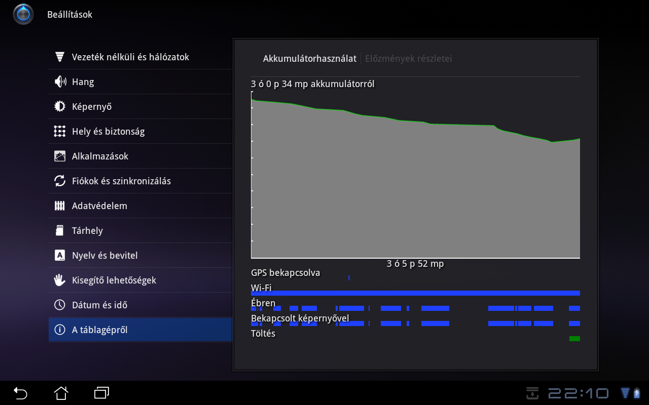 A dokkolóba épített akkumulátorral a készülék 9 órás üzemideje 15-16 órára ra tolható ki 720p-s videók lejátszásakor, 60%-os fényerő mellett.