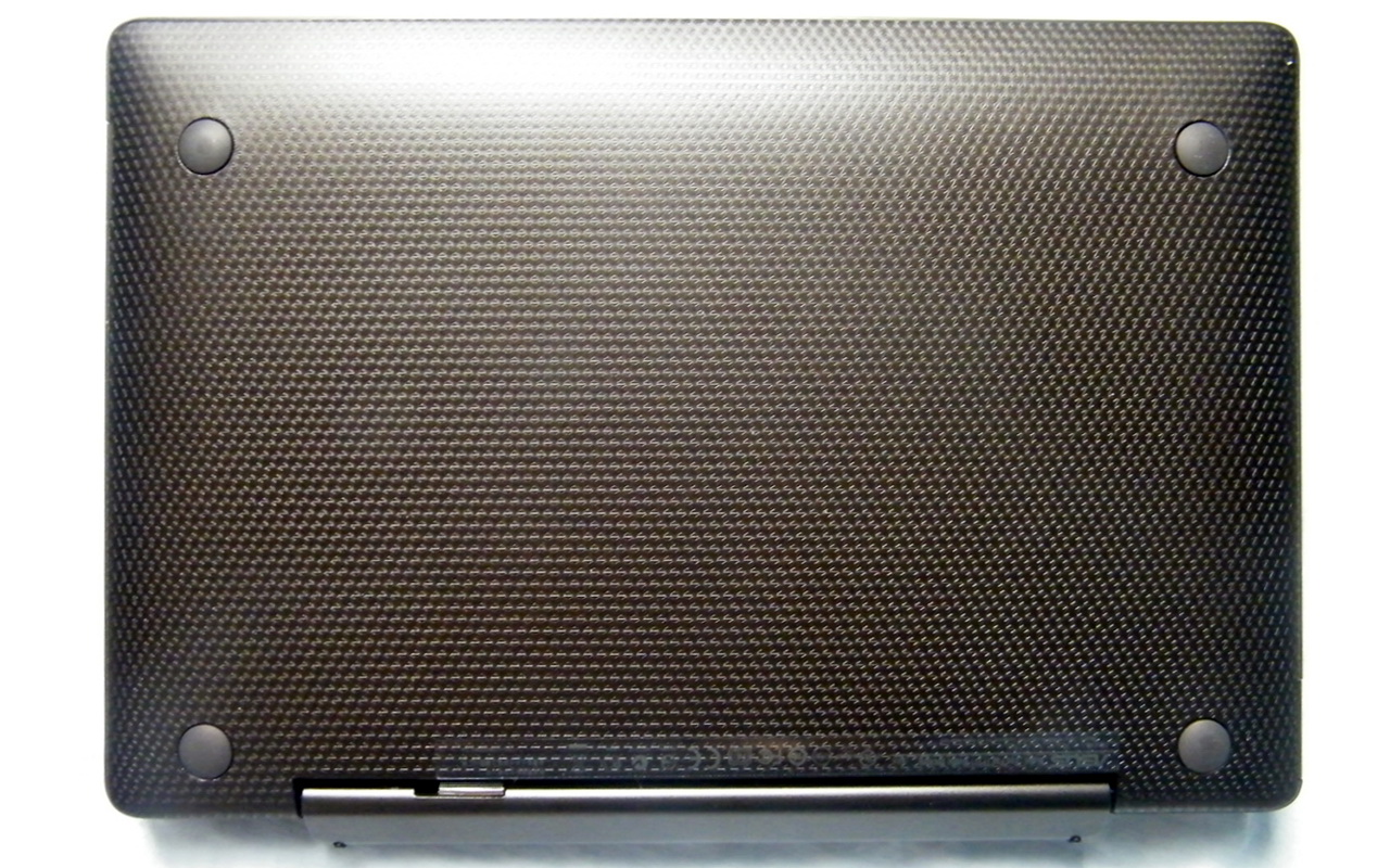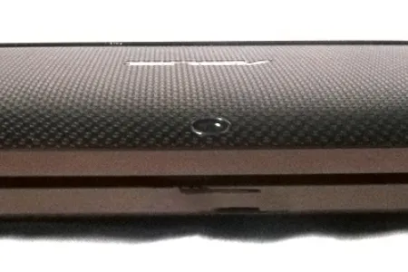 A csokoládébarna hátlap anyaga, amint korábban már említettük, műanyag, felülete pedig apró mintáktól érdes. A kissé kopogó hangot hallató műanyagot középen, az ASUS logónál minimálisan be lehet nyomni, az anyagminőség és a kidolgozás tehát lehetne jobb is kicsit. A hátsó rész egyetlen érdekessége a kamera, amely 5 Mpixeles képek készítésére alkalmas, és amely a többi honeycombos modellhez hasonlóan nem kapott vakut.