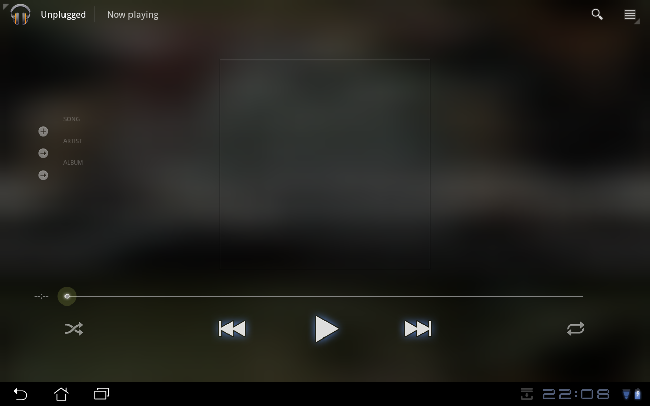 Az SRS Premium Sound minősítésű hangszórók megszólaltatására is csak a gyári Honeycomb zenelejátszó áll rendelkezésre, ami szintén egyszerű felépítésű és extráktól mentes, de legalább könnyű használni. A hangszórók méreteikhez képest hangosak, de mély hangok előállítására nyilván nem alkalmasak. FM rádió nincs a Transformerben.