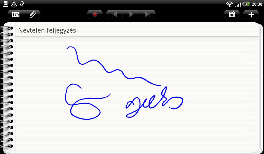 Bár jópofa funkció, igazán sok értelmét nem látjuk, egyedül akkor láttuk hasznát, ha egy nagyobb weboldal kis részét kivágva, és a lényeges információt bekarikázva akartuk elküldeni – erre pedig, valljuk be, ritkán van szükség. A toll funkciója egyébként a Scribe gomb megérintésével változtatható, állíthatunk a vonalvastagságon és a színen is, karakterfelismerés viszont nem áll rendelkezésre.