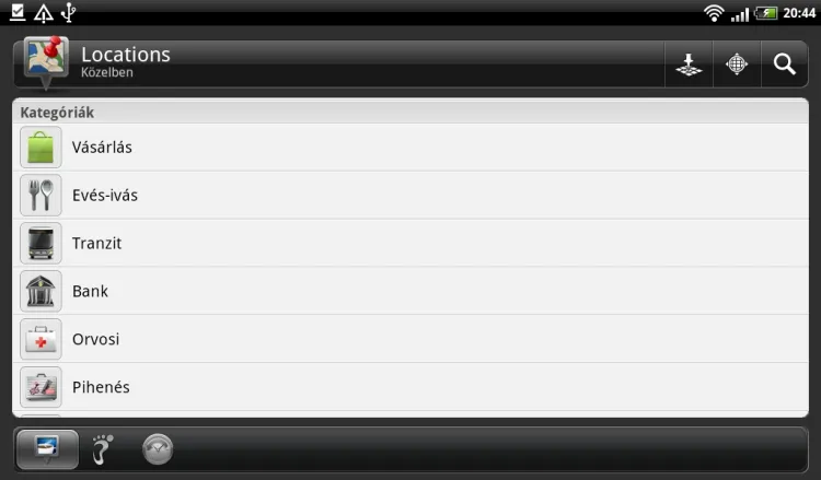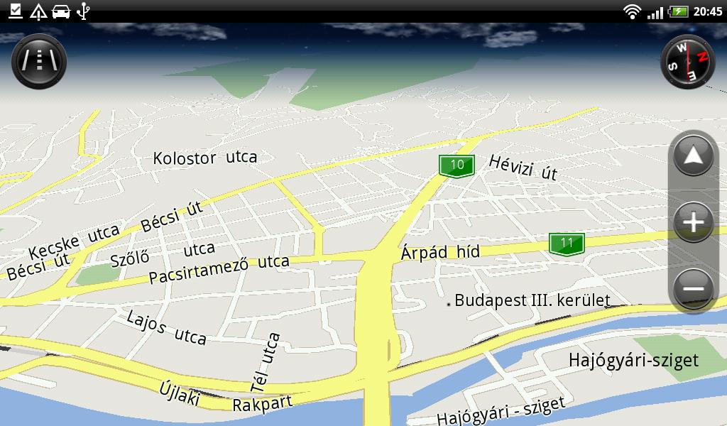 Az újabb Sense verziókkal már nem muszáj a Google Maps-re hagyatkoznunk, ha navigációról van szó, alaptartozék ugyanis a Locations nevű offline navigációs alkalmazás. Ez a Route 66-en alapul, és a mai divatnak megfelelően 3D-s nézettel és 3D-s épületekkel is rendelkezik. A térképadatokat nemcsak menet közben tölthetjük le, hanem utazás előtt, országonként vagy nagyobb területeknél régiónként is, így ha külföldre utazunk, akkor is használható marad a navigáció.