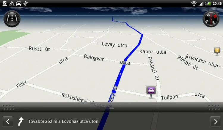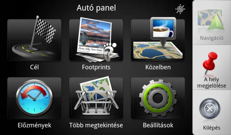 A Locationshöz tartozik egy látványos autós panel is, amely nagyobb gombok segítségével egyszerű hozzáférést biztosít a navigációs funkciókhoz – az már más kérdés, hogy a 7”-os Flyer egy átlagos személyautóba túl nagy a kényelmes navigációhoz.
