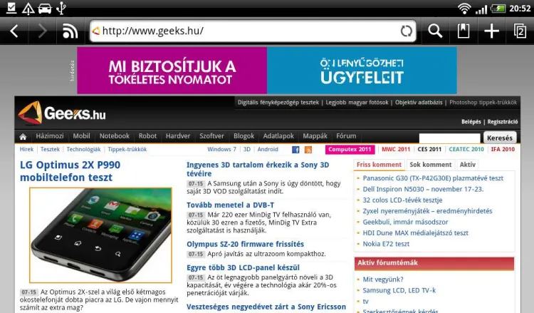 Nagy kijelzőjének köszönhetően a Flyer minden telefonnál jobban megfelel a netezésre – ráadásul alapértelmezésben asztali böngészőként jelentkezik be, tehát a mobilverzióval is rendelkező oldalak is rendes verzióban töltődnek be. Mivel fekvő helyzetben 1024 pixel széles képet kapunk, az oldalak megjelenésével sem lesz probléma.