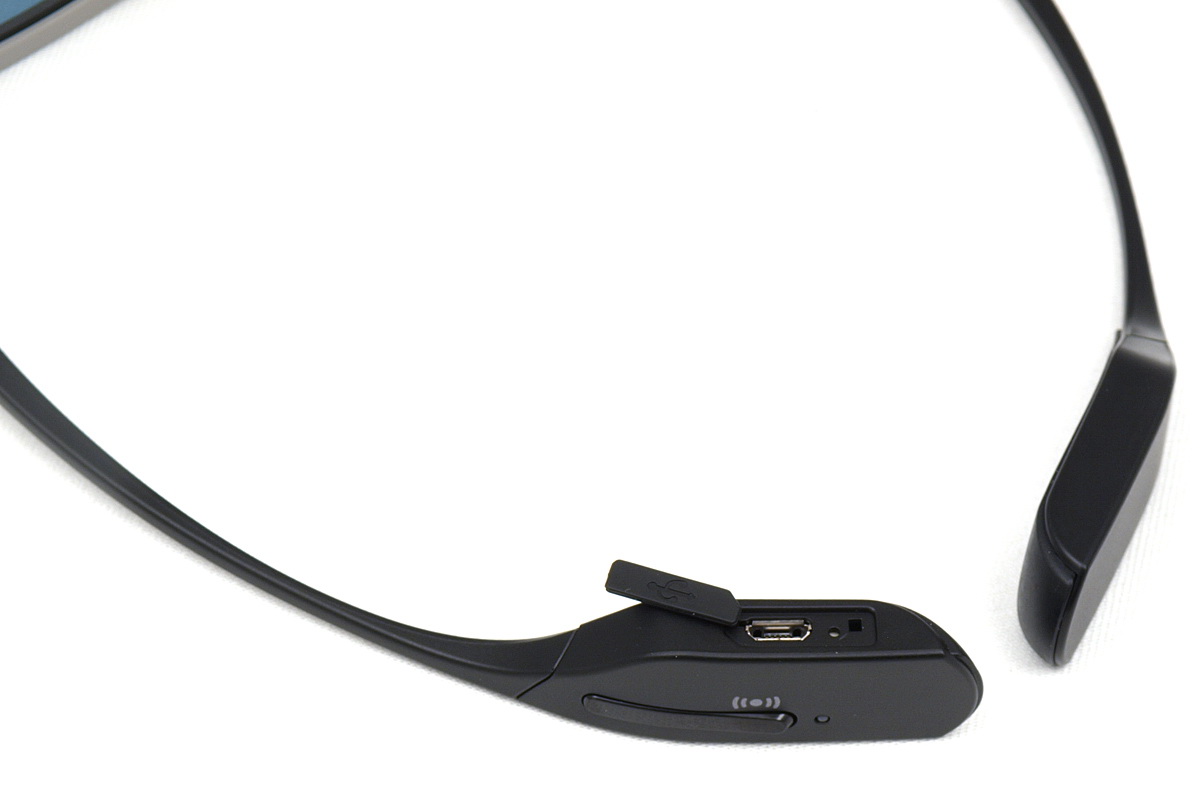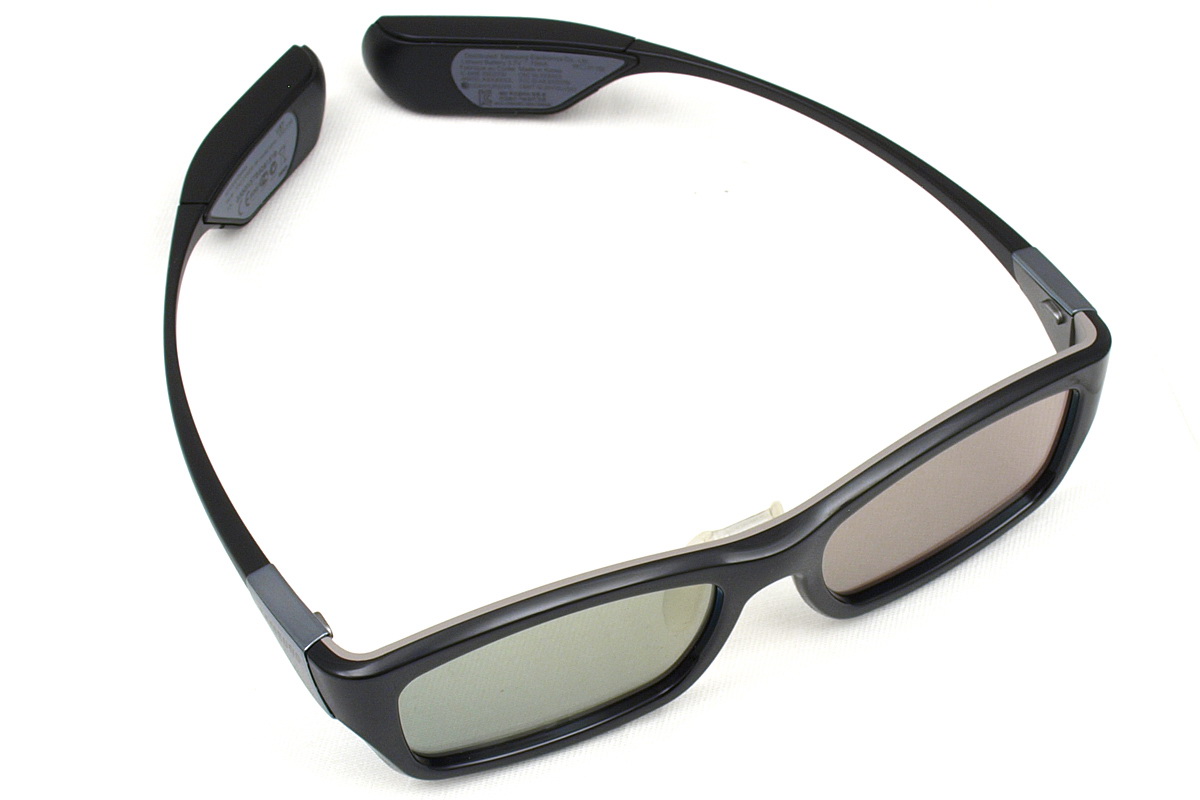 Nem ez volt azonban az egyetlen, amint a Samsung fejlesztett tavaly óta: jelentős változáson ment keresztül a szemüveg is. Eltűnt az infra jeladó, a szemüveg ugyanis már rádiófrekvenciás jel (egészen pontosan Bluetooth) segítségével kommunikál a tévével. Ennek előnye, hogy nem kell közvetlen rálátás a tévére ahhoz, hogy a szemüveg működjék (de persze ez hátrány is egyben, mert a bekapcsolva hagyott szemüveg, egészen addig, amíg megy a 3D film nem kapcsol ki még akkor sem, ha letesszük egy másik szobában az asztalra. Az SSG-3000 jelzésű kütyü tömege és formája az előző generációhoz képest szépen fejlődött, bár még mindig nem annyira könnyű, mint az LG tévéihez adott passzív szemüveg. Az SSG-3000-ről annyit érdemes még tudni, hogy akkumulátorral működik, amelyet microUSB kábellel tudunk feltölteni.