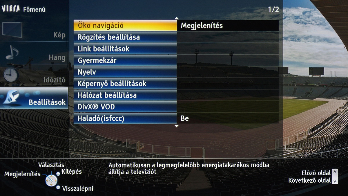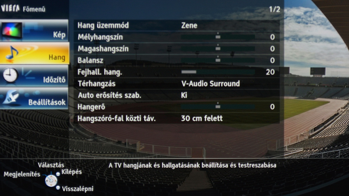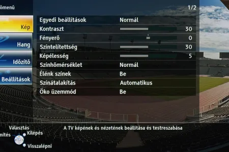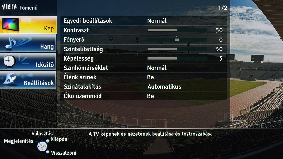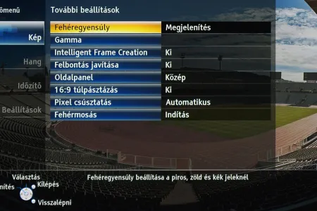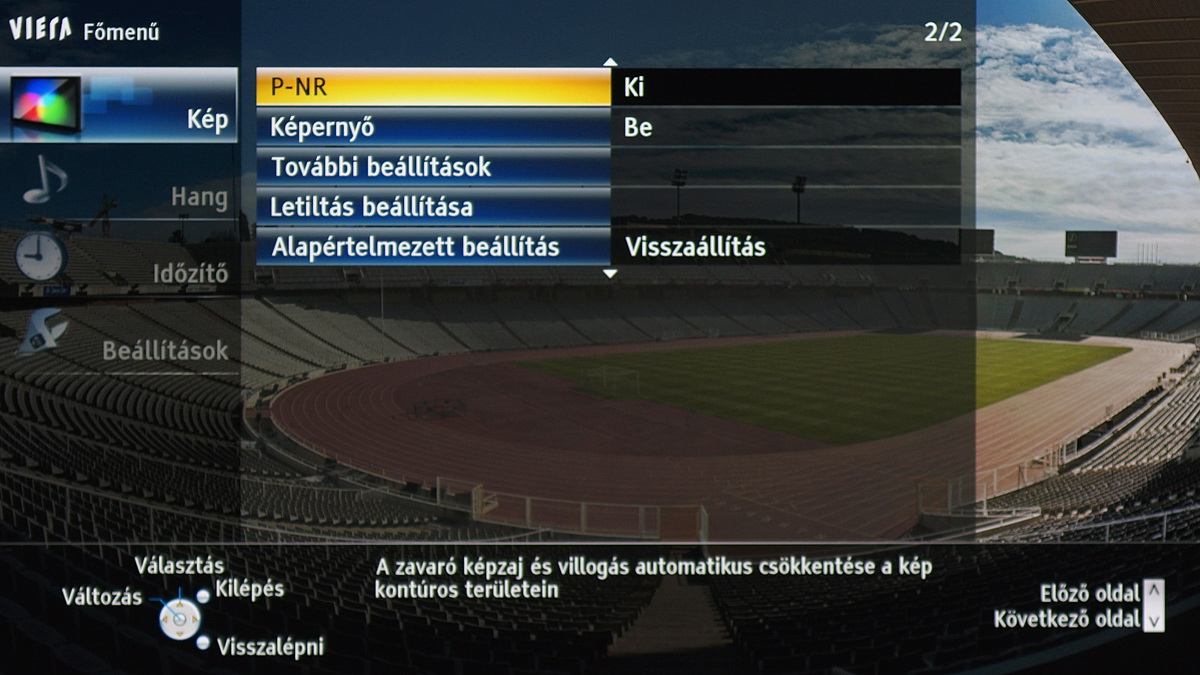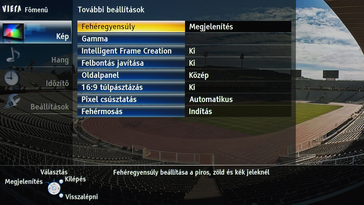 A TX-P42GT30 menüje, mint minden 2011-es Panasonic tévé menüje, megújult. Amellett, hogy a fontosabb menücsoportok grafikus ikont is kaptak, és modernebb lett a grafikus megjelenítés, ez azért fontos, mert a menü struktúrája is logikusabbá vált. Most már egyetlen helyen találjuk meg a kép beállítására szolgáló opciókat (korábban például az IFC az általános beállítások között volt). A tévé paraméterezhetősége jó (gamma, fehéregyensúly állítható), színprofilból is elég sok van. Arra érdemes figyelni, hogy a részletes képjavítókhoz csak akkor férünk hozzá, ha előtte engedélyezzük a Haladó (ifsccc) opciót. A képpel egyébként nyugodtan lehet játszadozni, mert az alapbeállításokat minden esetben egyetlen gombnyomással visszahozhatjuk. Bár a beégéstől már nem kell tartani, a ghosting problémát okozhat egy-egy hosszabb játék után – erre az esetre most már a menüből elérhető a fehérmosás funkció is, amivel az ilyen képhibákat 30-60 perc alatt eltűntethetjük a tévéről.