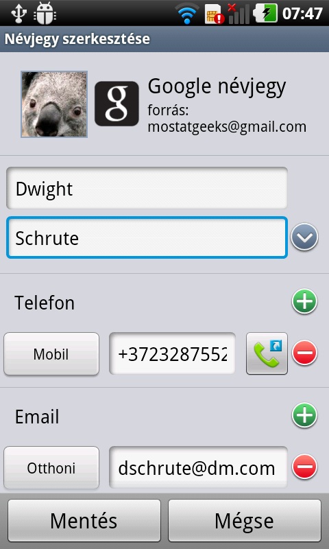 A telefonálás-üzenetkezelés párost tekintve a mobil az Androidtól megszokott barátságos képet mutatja. A névjegyek száma korlátlan és mindegyikhez számtalan információt vehetünk fel. Ami magát a beszélgetést illeti, ezzel nem volt problémánk, a készülék hangereje és vételi képessége jó, és a többi androidos készülékhez hasonlóan a beírt betűkből, számokból a ténylegesen hívni kívánt ismerőst kitaláló Smart dial is rendelkezésre áll.