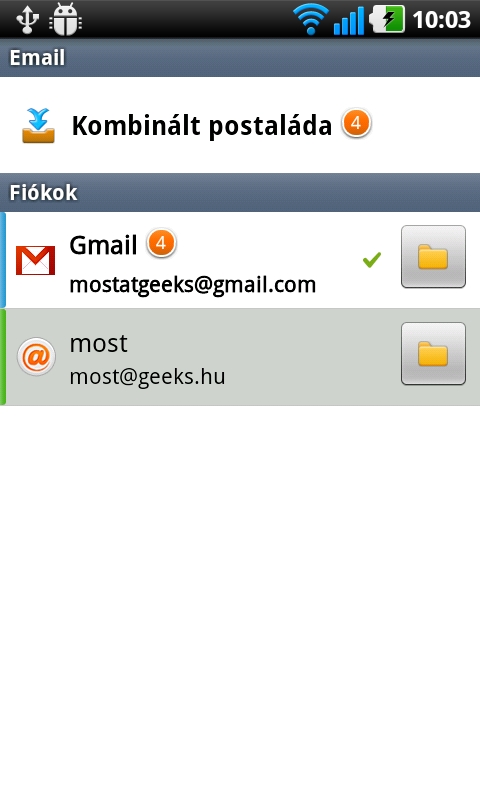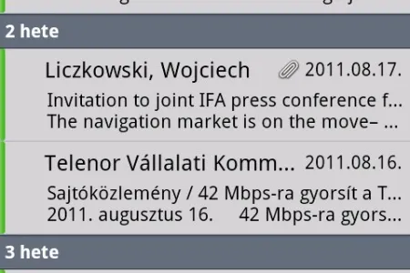 Levelezőkliensből kettőt kapunk: a Gmailhez tartozó a szokásos funkciókkal rendelkezik, míg a másikkal POP3, IMAP és Exchange fiókokhoz is kapcsolódhatunk. Az utóbbinál újdonság, hogy nemcsak külön-külön nézhetjük meg a fiókokat, hanem összefésülve is láthatjuk a beérkezett leveleket. Akinek több e-mail fiókja van, az nagyon hasznosnak fogja találni ezt a lehetőséget. A levelek letöltése teljesen testreszabható, a levelek szövegében pedig működik a copy&paste is.