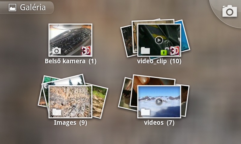 A zenelejátszó után következzen az első olyan program, ahol 3D-s üzemmódra válthatunk: ez a képnézegető, vagyis a Galéria. Tudása teljes mértékben megfelel az alap androidos változatnak, azaz a kép lapozgatása mellett indíthatunk diavetítést és kapunk pár egyszerűbb szerkesztési opciót is. Az érdekes extra a jobb oldali alsó sarokban található: itt a 3D gomb, amelyet megérintve 3D-ben jelennek meg az így felvett, vagy máshonnan JPS formátumban áttöltött fotók.