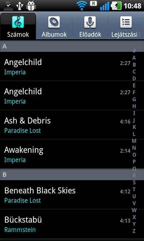 Ami a zenelejátszót illeti, ez viszonylag átlagosnak mondható, az Androidon megszokott funkciókkal, úgy is mint az ID3 mezők alapján történő csoportosítás, az albumborítók megjelenítése, és így tovább. Ami extrának tekinthető, az a DLNA-funkcióhoz kapcsolódik, a telefonon tárolt zenéket ugyanis a SmartShare alkalmazáson keresztül (ez külön is elindítható, mivel két irányban működik) a helyi hálózaton elérhető DLNA-kompatibilis lejátszókra is átküldhetjük. Amennyiben lejátszás közben nyomva tartjuk az albumborítót, egy extra menü ugrik elő – ennek segítségével az adott dal előadójára, címére vagy az album címére kereshetünk rá az interneten.